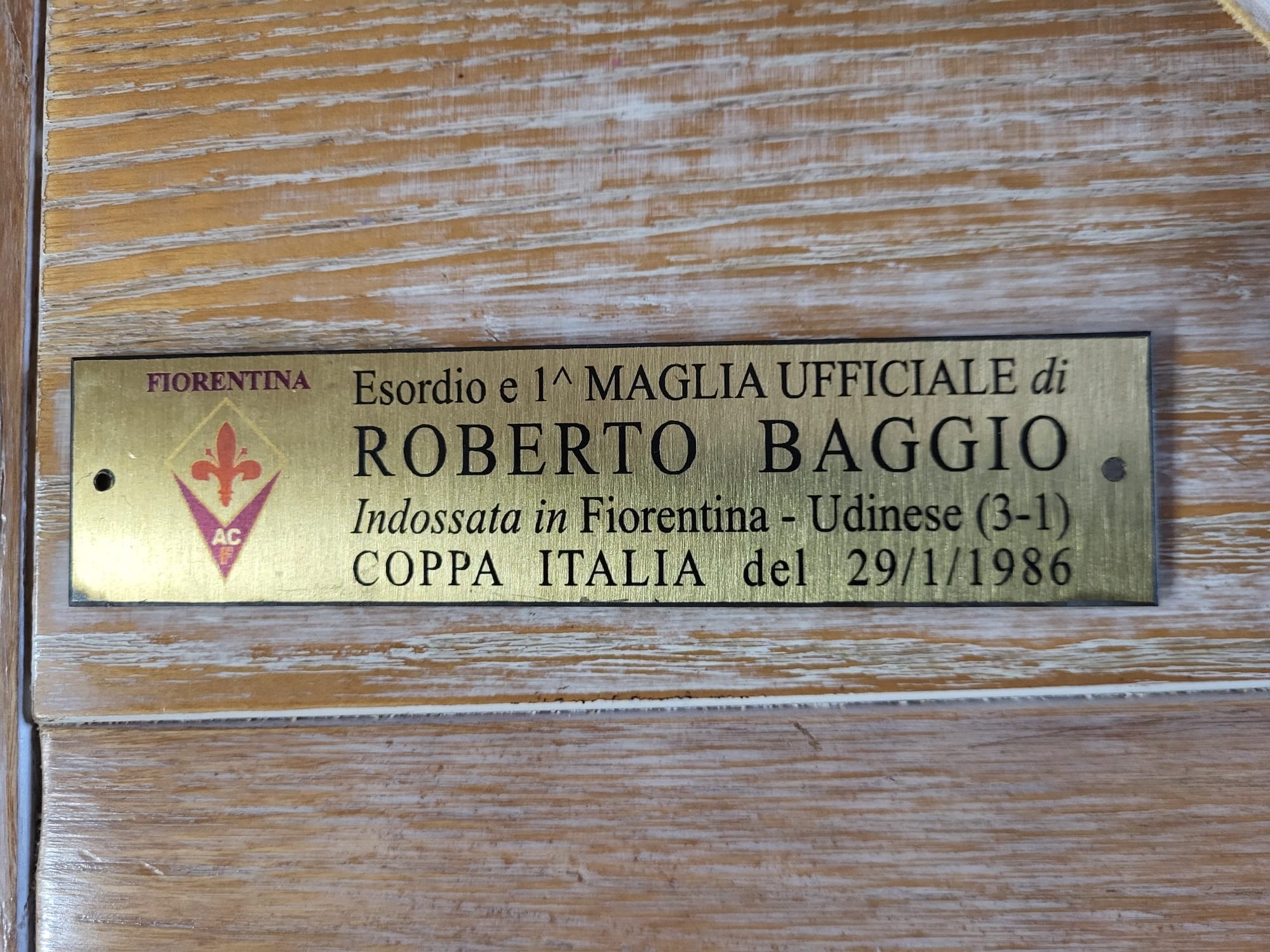 E qui bisogna fare un passo indietro nella storia. Ottavi di finale di coppa Italia, partita di andata contro l’Udinese, viola in campo con Galli, Contratto, Pin, Passarella, Carobbi, Oriali, Berti, Antognoni, Pellegrini, Monelli, Massaro. Agroppi fa entrare Baggino al 74’ al posto di Pellegrini, la Fiorentina stava vincendo 2-1 (gol di Pin e Passarella, che poi segnò anche il 3-1). Immaginiamoci il giovane Roberto riemerso dall’infortunio che gli aveva fracassato il ginocchio: aveva addosso quella maglia con il numero 16 per entrare nel calcio vero e ricominciare tutto, quei pochi minuti sono rimasti per Baggino un brivido senza tempo. Per 39 anni quella maglia ha vissuto incorniciata a casa di Giuliano, che ha resistito a molte tentazioni prima di restituirla a chi l’aveva indossata portando in giro, per la prima volta, se stesso e Firenze. Non è stato in effetti un regalo indolore.