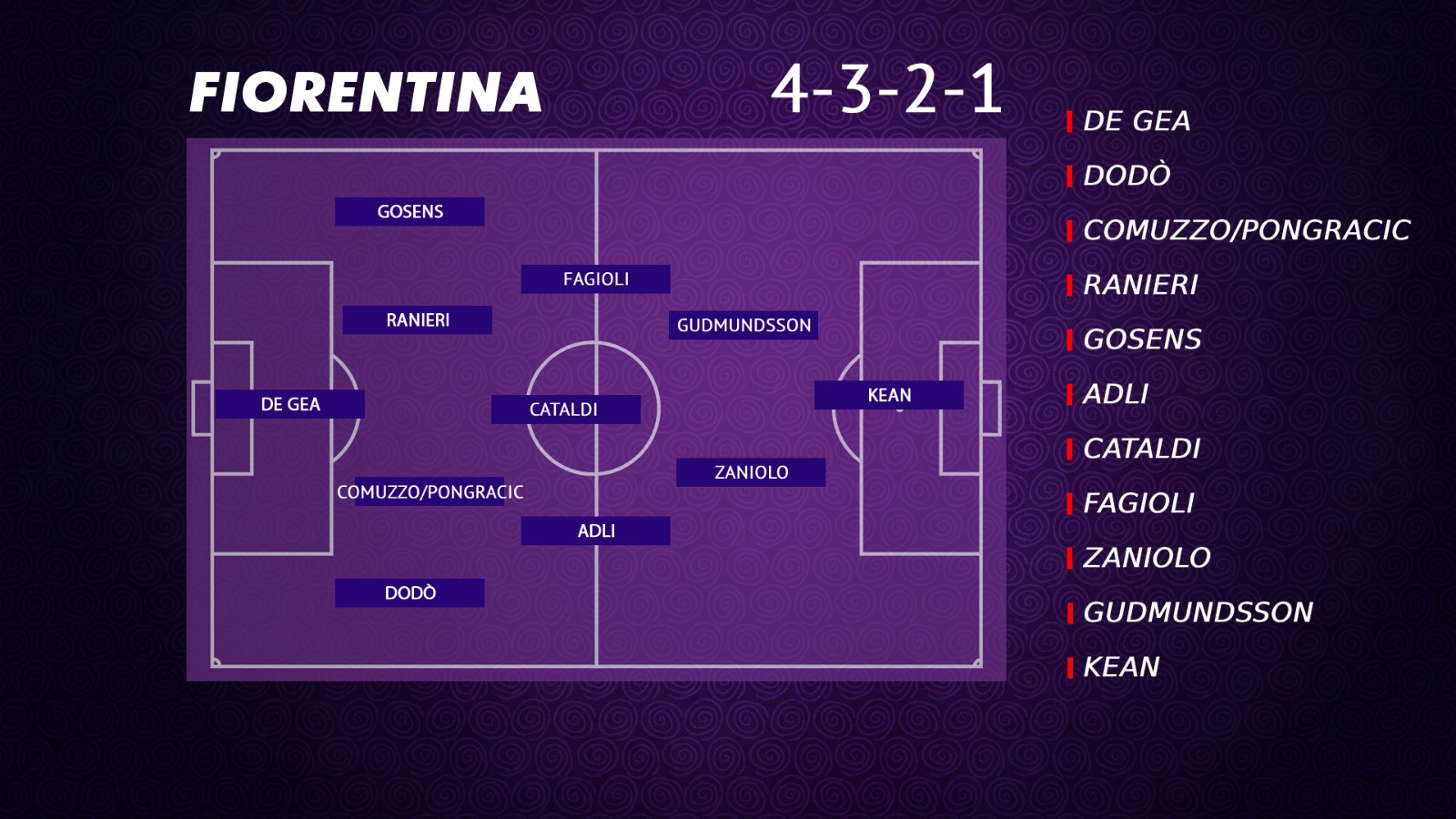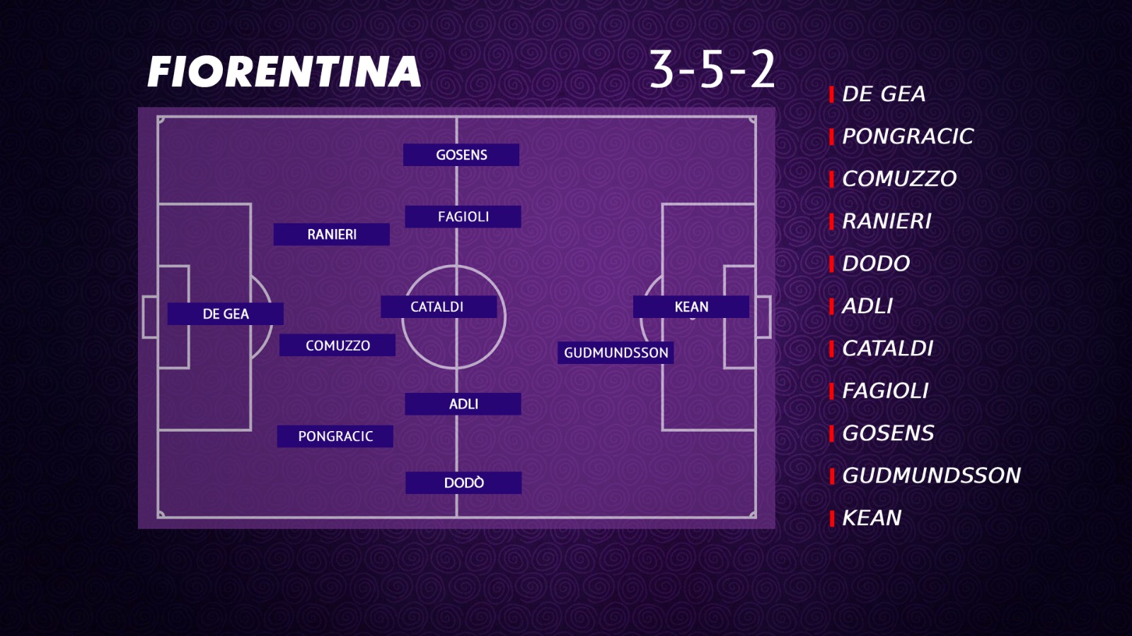 Un assetto simile a quello visto ad Atene, e quindi il 3-5-2, ma con una trazione più offensiva. Questa la prima opzione: e quindi difesa a tre con Pongracic, Comuzzo e Ranieri a difesa di De Gea, a oggi favorito su Terracciano. A centrocampo però, l'idea è di mettere tanta qualità: la classe (e il palleggio) al potere, con Yacine Adli che scalpita per rientrare dopo un mese ai box. Accanto a lui l'intoccabile di questo momento, Nicolò Fagioli, candidato agli straordinari, e Danilo Cataldi, probabilmente davanti alla difesa. Tre fini dicitori, o palleggiatori, per aumentare ritmo e dare linee di passaggio nuove all'attacco, che con questo assetto dovrebbe vedere Gudmundsson (ancora) accanto a Kean, con Dodo e Gosens sulle corsie.