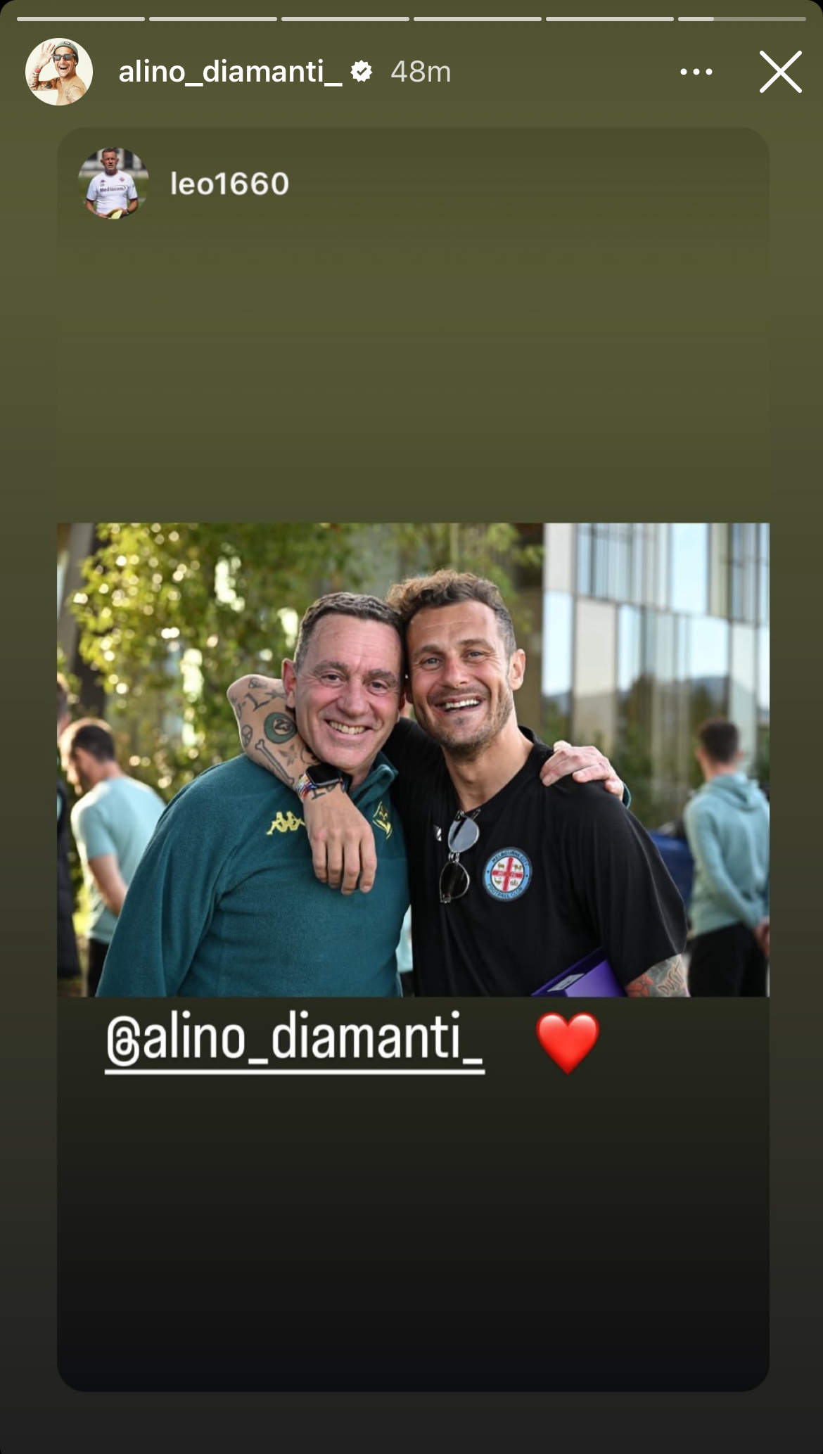 Visita speciale per la Fiorentina oggi al Viola Park. Dopo aver disputato la Viareggio Cup da allenatore del uo Melbourne City Youth, l'ex giocatore viola Alessandro Diamanti ha fatto visita al nuovo centro sportivo viola. Come ha mostrato lui stesso sui propri social, si è scattato anche una foto con lo storico magazziniere della Fiorentina Leonardo Marchetti. Qui sotto le immagini.