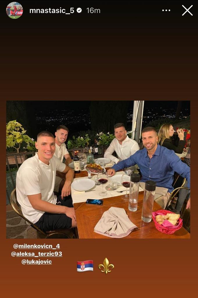 Sulle storie Instagram di Nastasic è stata postata proprio dal centrale della Fiorentina una foto che lo vede a cena, a Fiesole, con i suoi compagni viola e di nazionale. Oltre a Milenkovic e Terzic, è presente in foto anche Jovic, che ritrova così a Firenze alcuni amici e colleghi serbi. Sicuramente questo è un ottimo modo di iniziare a legare col gruppo, visto che l'ex attaccante di Real Madrid ed Eintracht è arrivato solo da ieri.