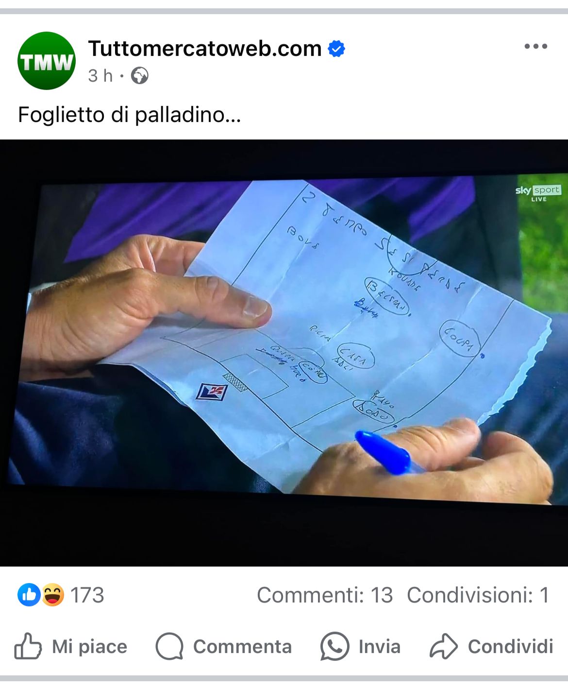 Curioso dettaglio "svelato" dalle immagini di Sky Sport durante San Gallo-Fiorentina. Nel corso della gara infatti, dalla diretta dell'emittente si è intravisto nell'inquadratura un foglio, appartenente allo staff di Raffaele Palladino (o magari dello stesso allenatore). Sul pezzo di carta, griffato dal logo ufficiale del club, si notano degli appunti scritti a penna che disegnano un ipotetico assetto tattico da impostare durante la ripresa, con su inciso "se si perde". Sotto, la suddetta formazione schierata col 4-2-3-1. Questa l'immagine ripresa dalle telecamere: