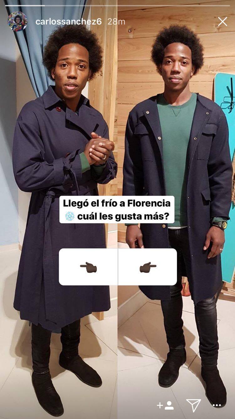"E' arrivato il freddo a Firenze" commenta Carlos Sanchez che su Instagram pone un quesito quasi da fashion blogger visto che riguarda due diversi cappotti tra i quali scegliere. Il centrocampista che ieri ha giocato 90 minuti interroga i suoi followers attraverso i sondaggi delle Instagram Stories.