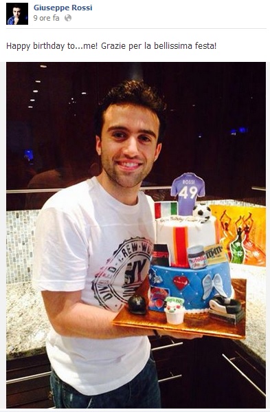 Sabato era il compleano di Giuseppe Rossi e tutto il mondo del calcio si è fermato per augurargli buon compleanno. Nella giornata di ieri, lo stesso attaccante viola ha postato una foto della torta di compleanno che gli hanno regalato i parenti con in cima una sagoma della sua maglia viola targata 49. Un bel regalo che lui ha voluto condividere con tutti i tifosi per festeggiare ancora una volta il proprio 27esimo compleanno.