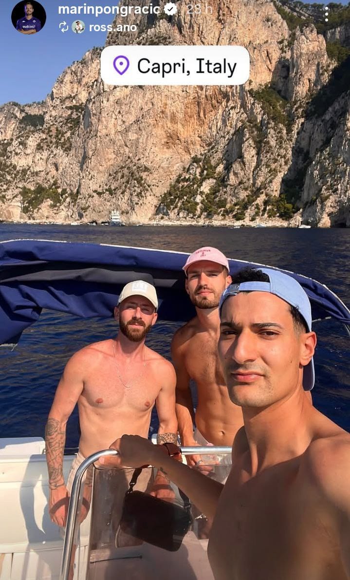 Al termine di Manchester United-Fiorentina è arrivato il rompete le righe di Stefano Pioli e quindi, da sabato sera, i calciatori della Fiorentina hanno scelto diverse mete per questi due giorni di ferie in attesa della ripresa degli allenamenti fissata per domani. Uno di questi, Marin Pongracic, è volato subito a Napoli, dove da sabato sera si sta godendo le ultime ore di vacanze tra barca e gite in città, tutto documentato sui propri canali social. Ecco l'immagine del centrale viola a Capri: