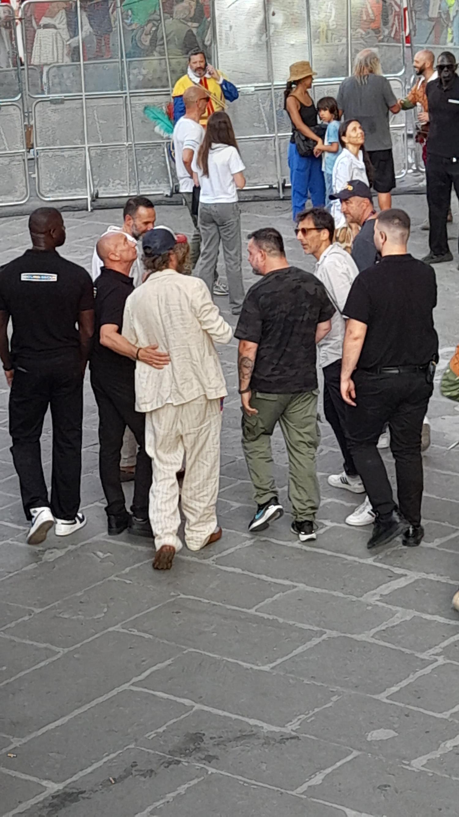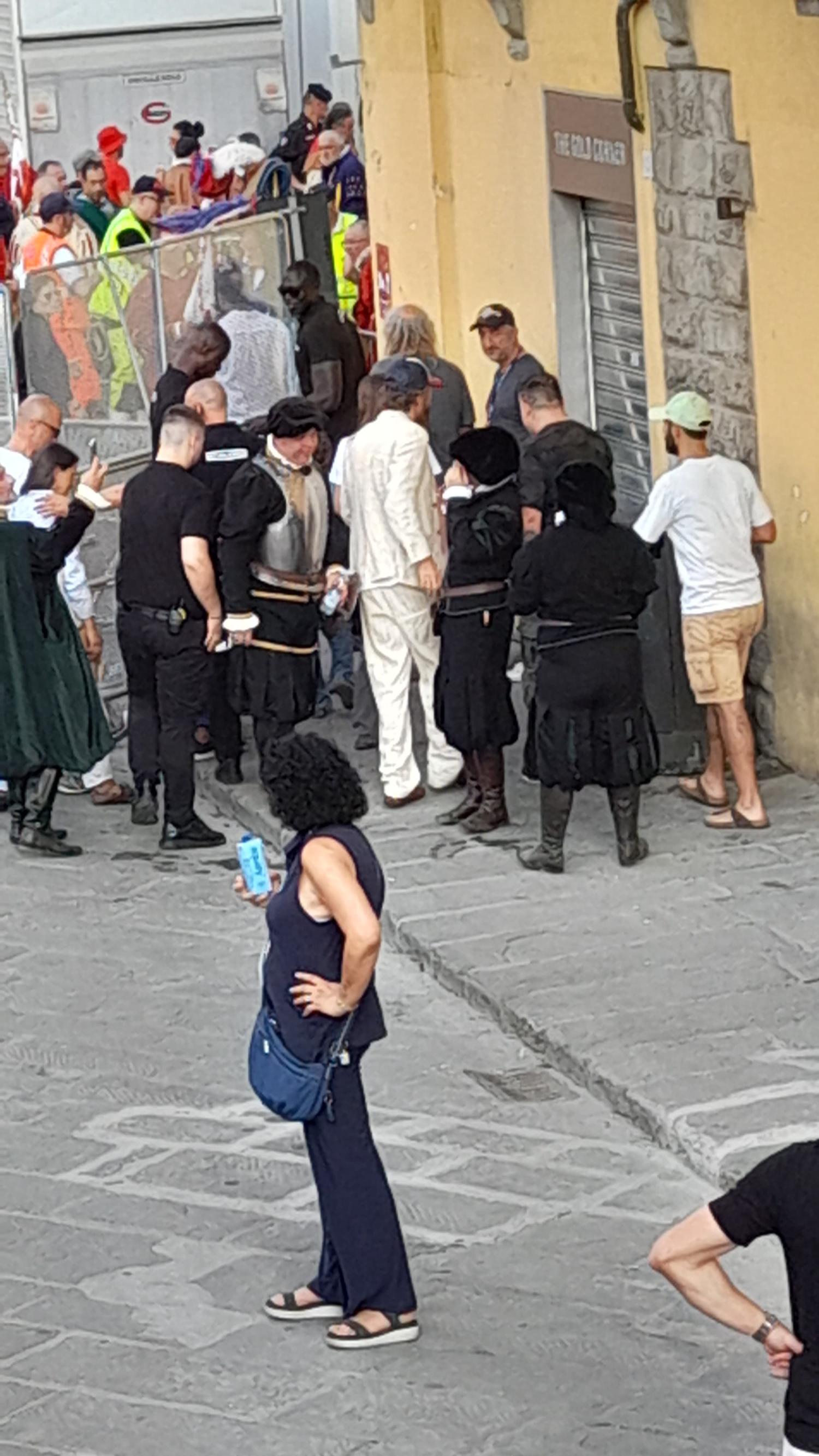 Alla prima semifinale del calcio storico tra Azzurri e Rossi, c'è anche un ospite d'eccezione ad assistere alla sfida. Si tratta del cantante di Cortona Jovanotti che ha ammesso di essere emozionato per la sua prima volta. Il cantante, che si è seduto accanto alla sindaca Sara Funaro, è stato riconosciuto dagli altri spettatori e lui si è concesso volentieri per qualche selfie. Tra i viola immancabile Maurizio Niccolini, capo scouting del settore giovanile, grande appassionato.