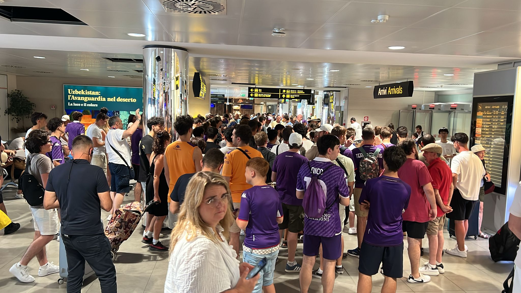 A Firenze cresce l'attesa per David De Gea: sono diverse decine i tifosi (oltre un centinaio) che hanno sfidato il caldo e nella tarda mattinata di oggi si sono posizionati all'aeroporto di Peretola, nella hall dedicate agli arrivi, per aspettare l'ex portiere del Manchester United. Tanto entusiasmo e qualche sciarpa viola, i fiorentini sono già pronti ad accogliere il fuoriclasse spagnolo, atteso a breve a Peretola.