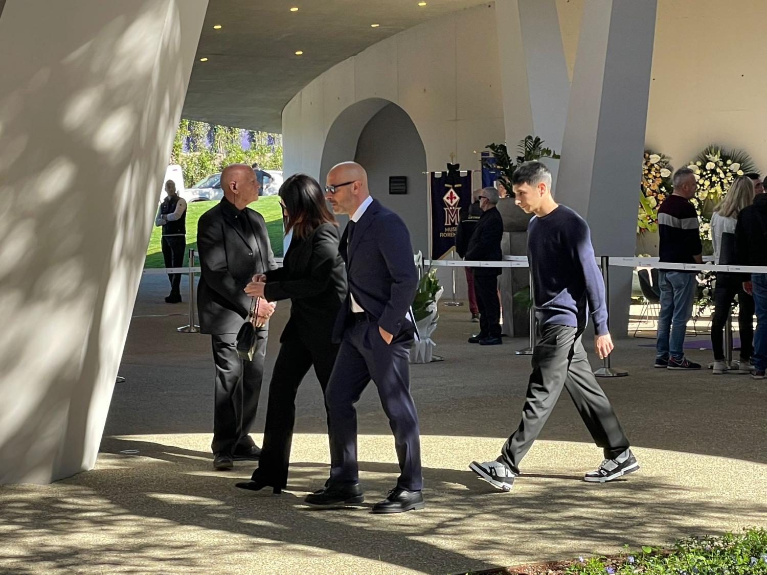 Sono da poco arrivati al Viola Park a rendere omaggio al feretro del direttore generale della Fiorentina Joe Barone, il tecnico viola Vincenzo Italiano, la moglie e il figlio Christian.