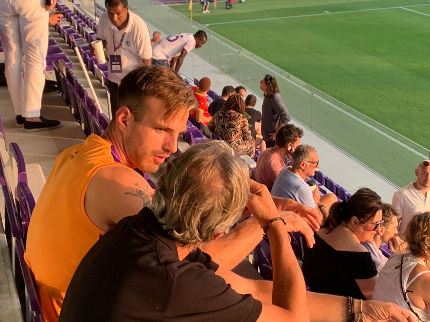 Uscito acciaccato nell'ultima amichevole contro l'Hull City, Marin Pongraric è stato lasciato in tribuna in maniera precauzionale. Queste le immagini del difensore croato presente nelle tribune del Viola Park assieme ad Alessandro Ferrari raccolte da FirenzeViola.it: