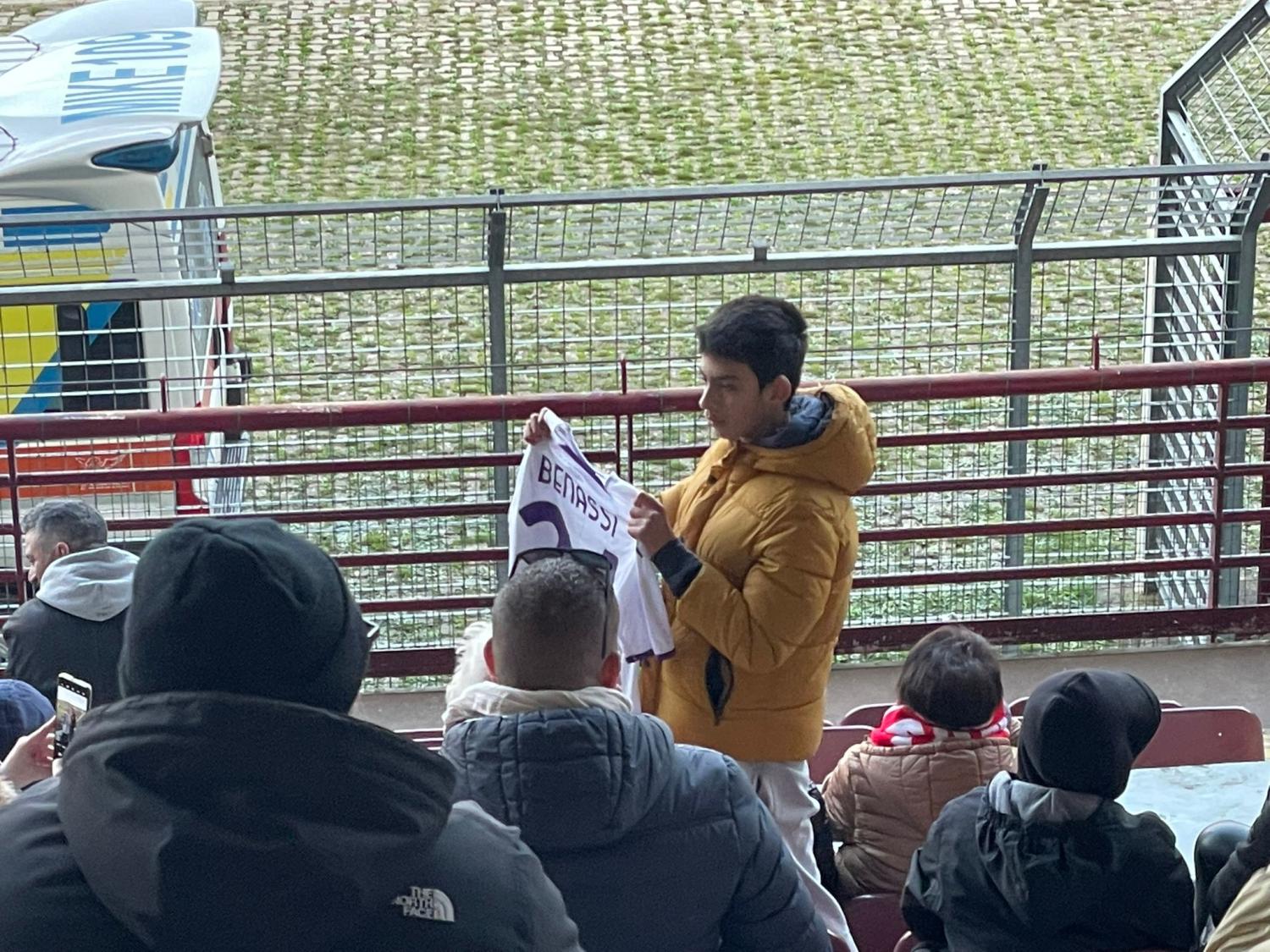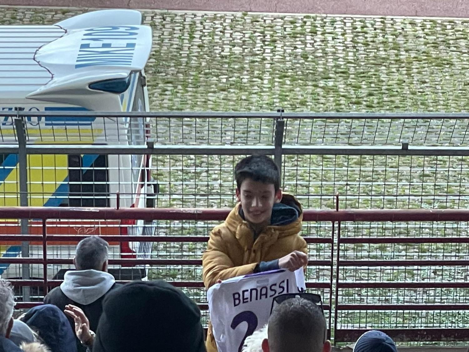 Un grandissimo primo tempo per Marco Benassi condito da una bellissima tripletta contro l'Arezzo. Il centrocampista della Fiorentina, nel momento del cambio, ha voluto lanciare la propria maglia ai tifosi presenti allo stadio Città di Arezzo. Maglietta che, come mostrato dalle foto realizzate dagli inviati di FirenzeViola.it, è stata raccolta da un piccolo tifoso viola:
