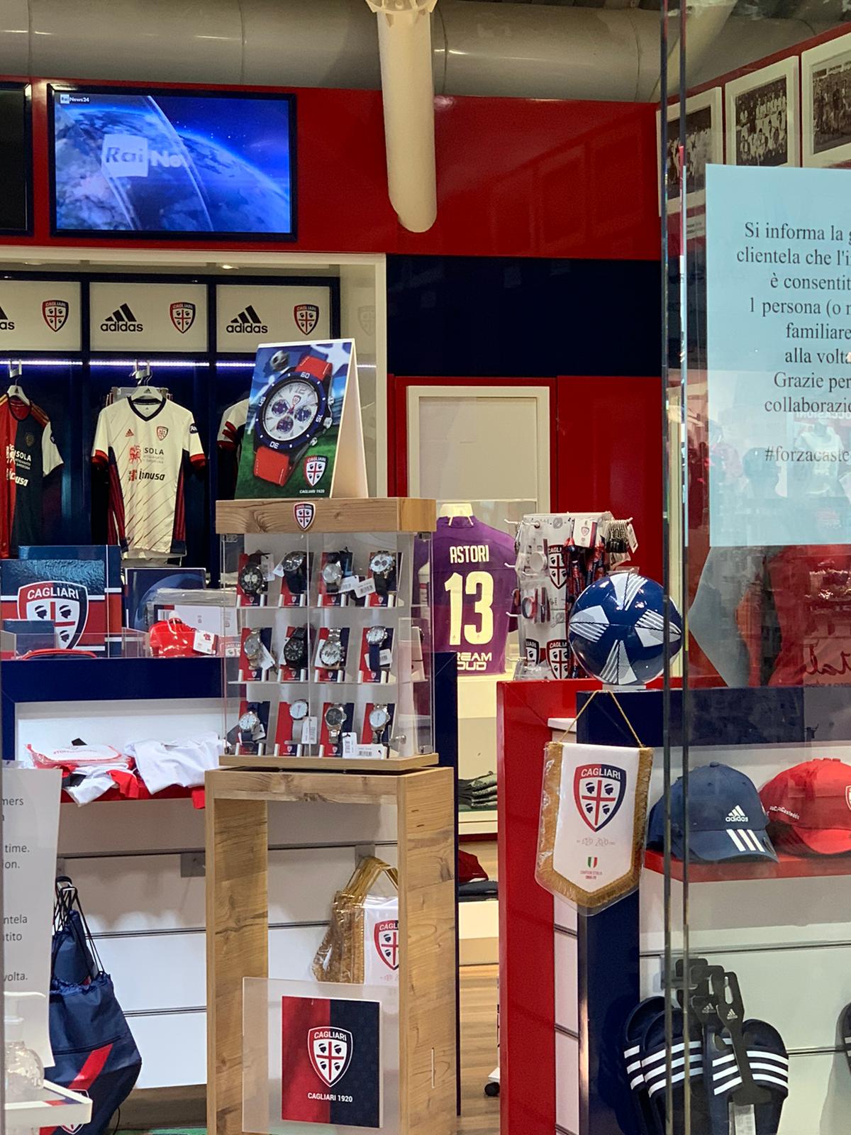Il legame tra Fiorentina e Cagliari vive con grande forza nel ricordo di Davide Astori, e in tal senso arrivano spesso dimostrazioni di ciò. Come nel caso dell'omaggio a tinte viola che si può apprezzare nel Cagliari Store dell'aeroporto cittadino di Elmas, visto che nel negozio dedicato ai prodotti ufficiali del club sardo è apparsa una maglietta viola con il nome di Astori e il suo numero, il 13. Ecco la foto che racconta quanto scritto.