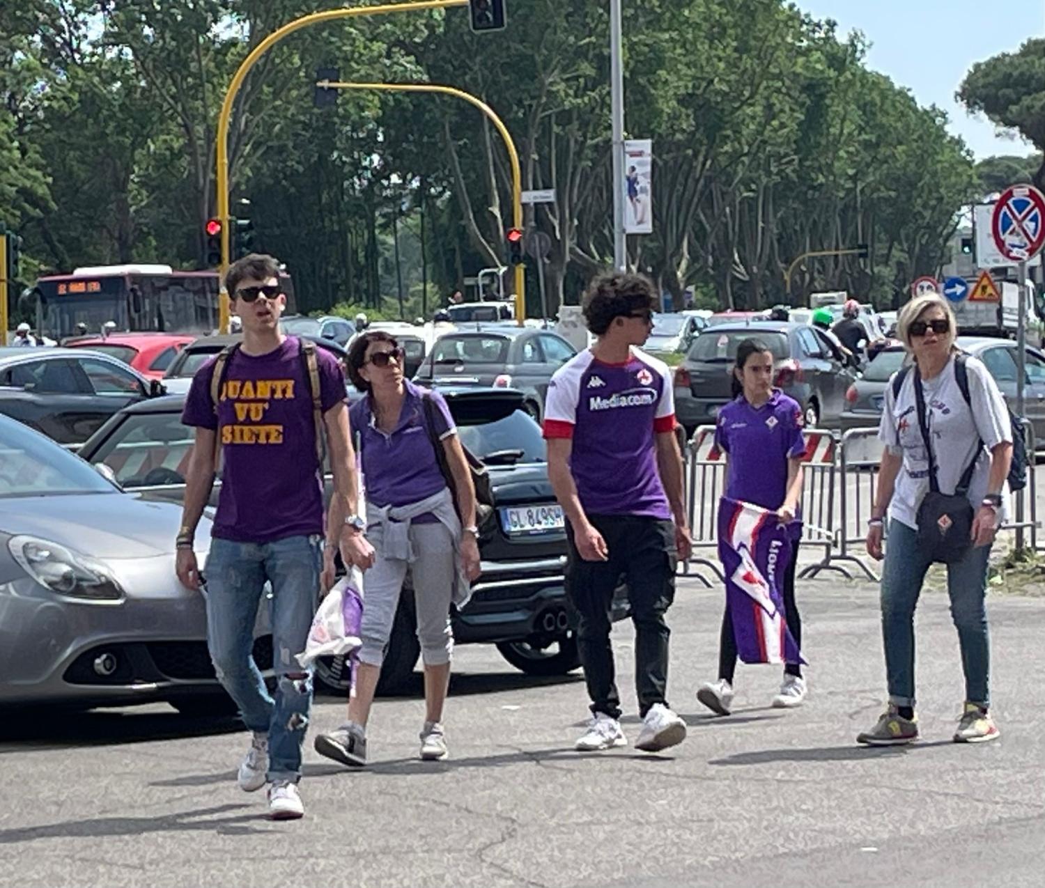 Ecco i primi tifosi viola sopraggiunti a Roma in attesa del fischio d'inizio di stasera, come raccolto da Firenzeviola. Si registra un clima sereno nei pressi dello stadio, con alcuni gruppi delle due tifoserie insieme. Di seguito le foto dei nostri inviati: