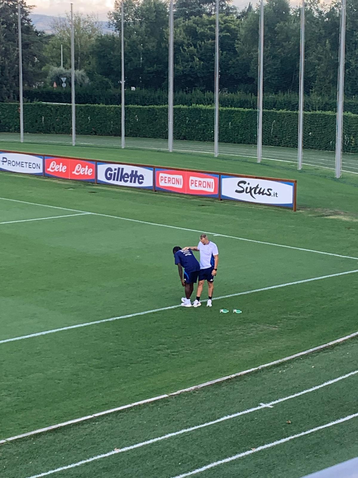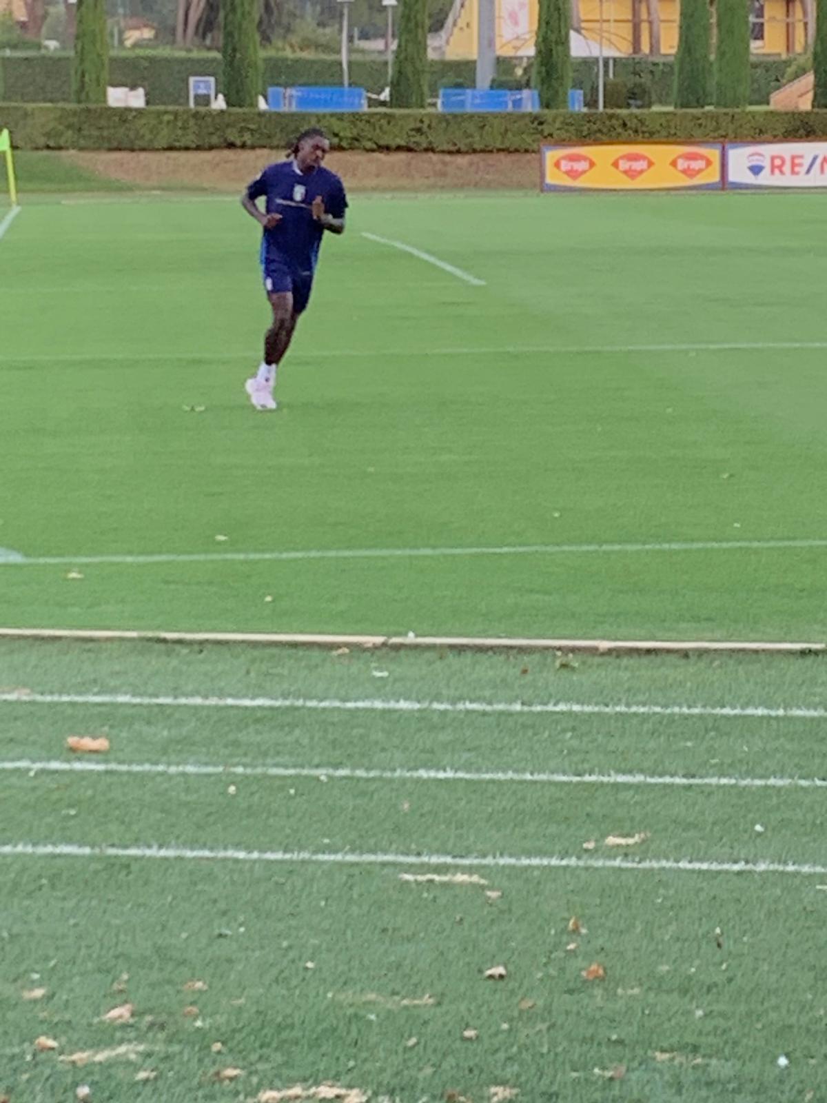 In questi minuti al Centro Tecnico di Coverciano la Nazionale si sta allenando sotto gli ordini di Luciano Spalletti, in vista della sfida di Nations League contro la Francia. Tutti in gruppo e a disposizione del ct, tranne Moise Kean, che come mostra lo scatto realizzato da FirenzeViola.it, sta svolgendo solo un po' di parte atletica con uno dei collaboratori di Spalletti.