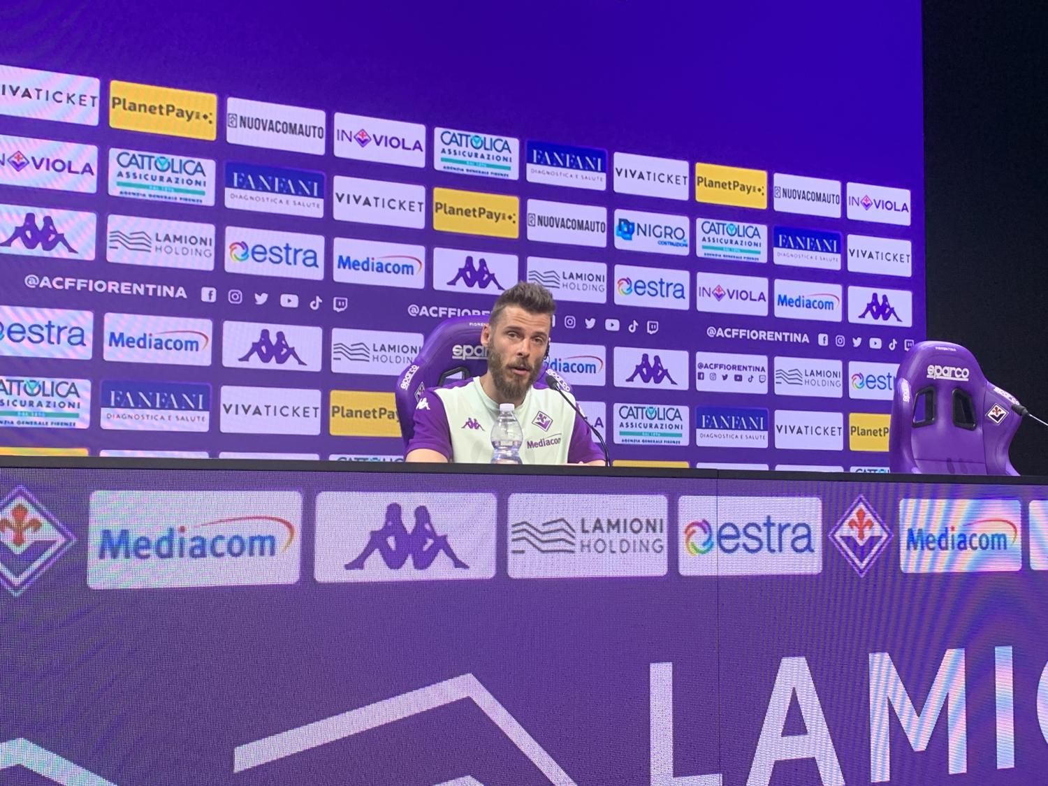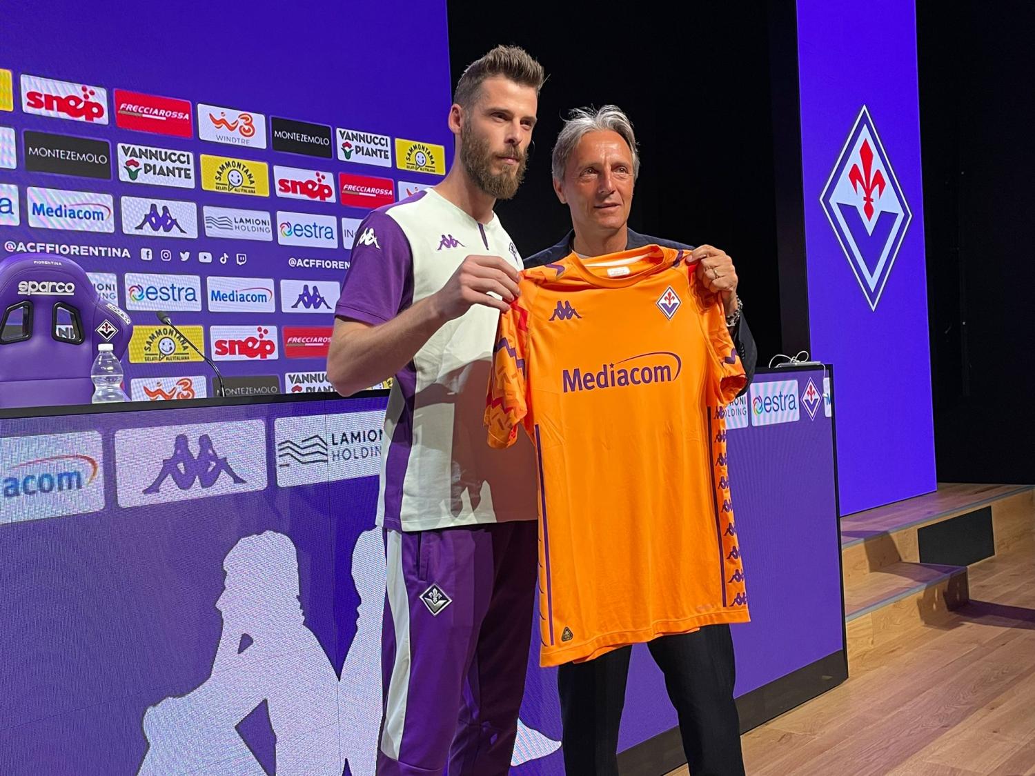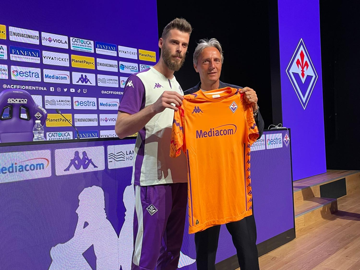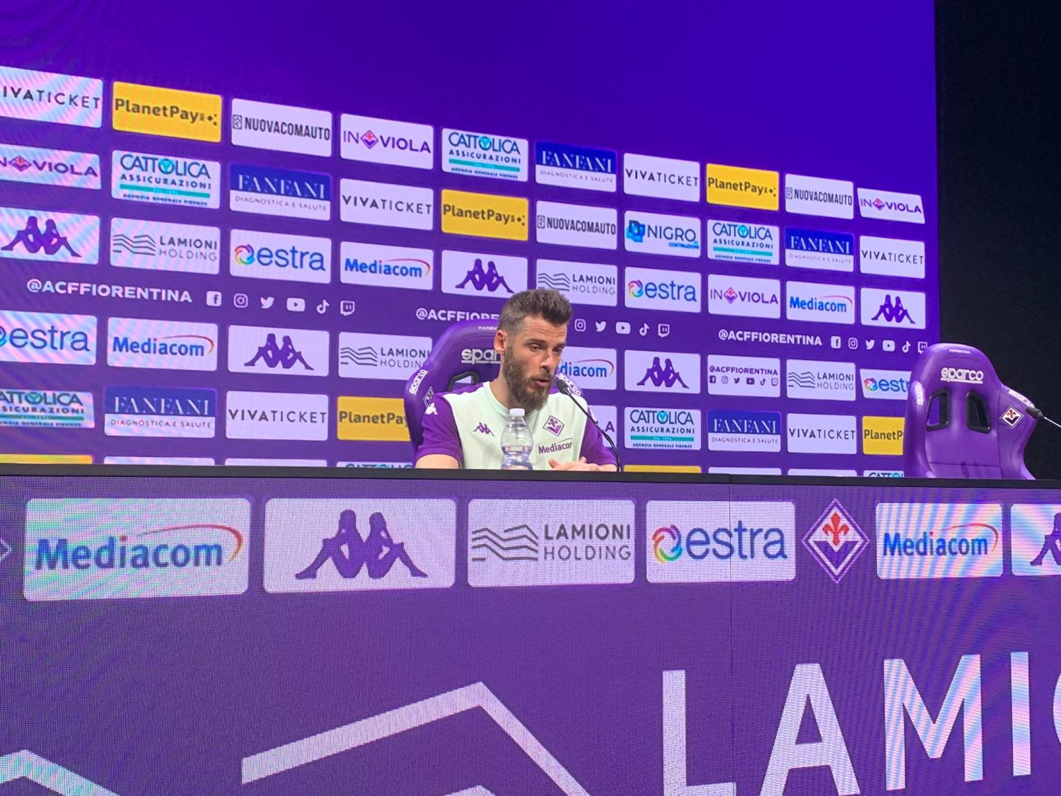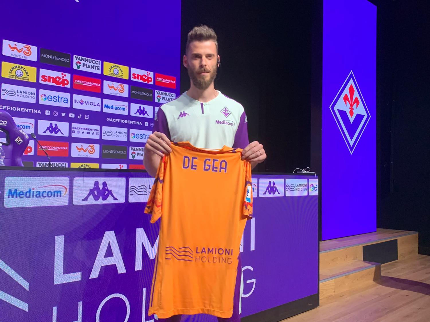 In casa Fiorentina è il gran giorno di David De Gea: l'ex leggenda del Manchester United è uno degli ultimi colpi in ordine cronologico del mercato viola e oggi si è presentato ai suoi nuovi tifosi in conferenza stampa. Ecco le foto scattate direttamente nella sala stampa del Viola Park, dove nel primo pomeriggio lo spagnolo è stato protagonista (qui le sue parole).
