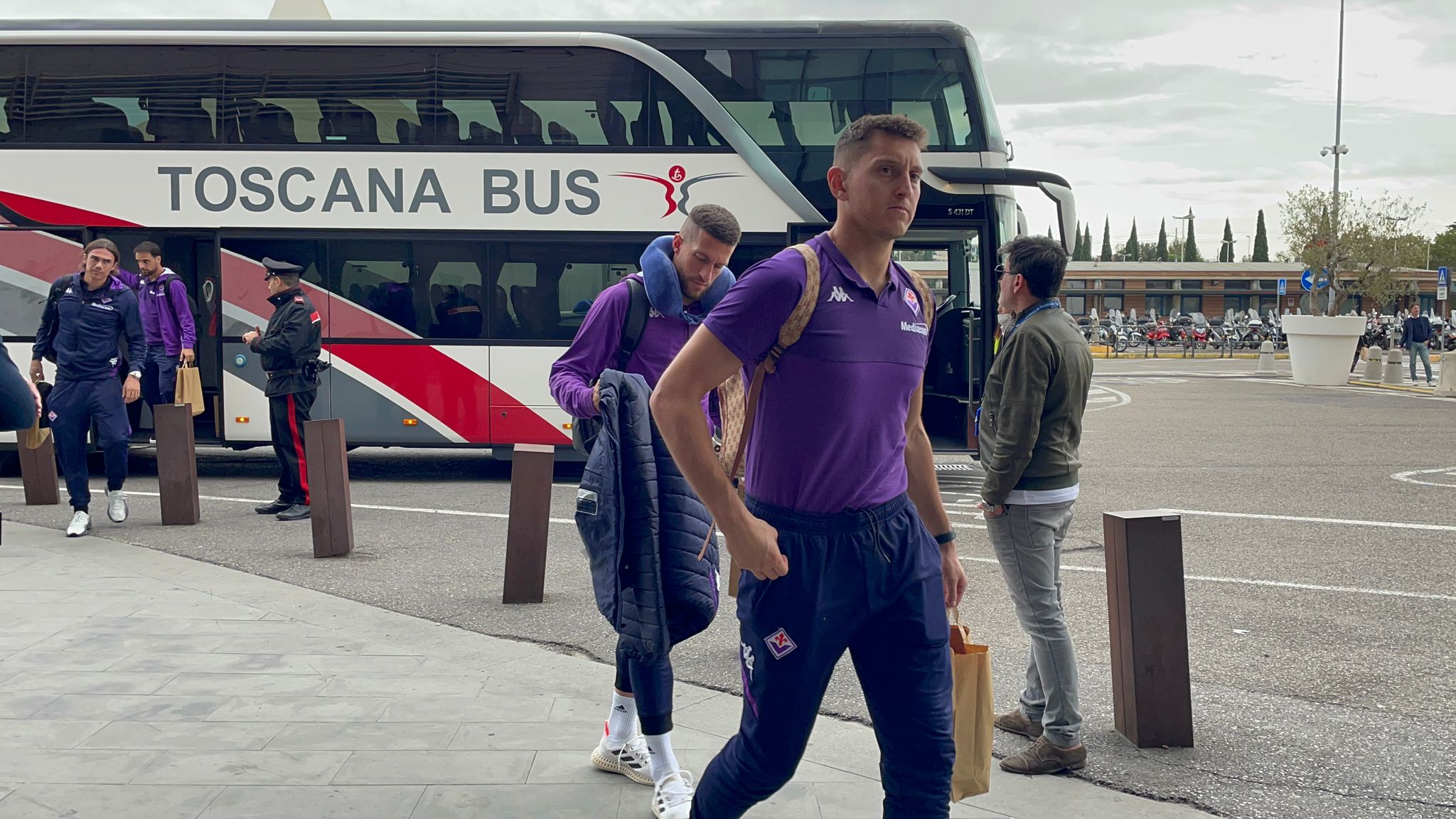 Giornata di vigilia per la Fiorentina, che domani contro l'RFS Riga affronterà l'ultima sfida europea del 2022. La squadra di Vincenzo Italiano partirà a breve per la Lettonia, dove domani pomeriggio (ore 16:30) disputerà la sesta e conclusiva gara del girone di Conference League. Dai nostri inviati all'aeroporto di Peretola, ecco alcuni scatti della partenza dei viola:
