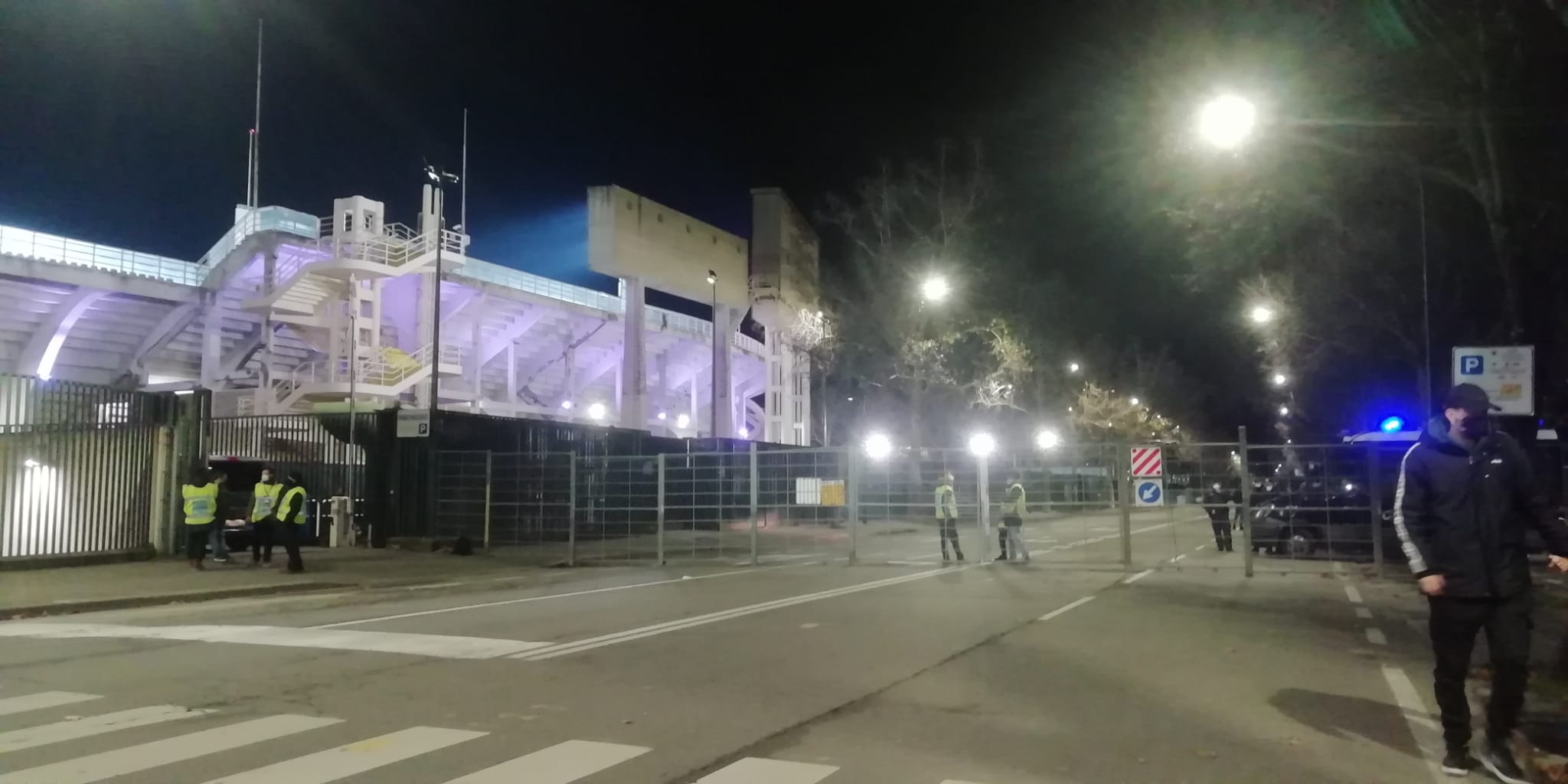 Fiorentina-Udinese non si giocherà, ma come mostrano le foto di FirenzeViola.it non cambia la preparazione del Comune alla sfida. Non solo perché la Fiorentina dovrà presentarsi comunque al Franchi - ed il pullman è stato anche acclamato da un piccolo gruppetto di tifosi presenti - ma anche perché la Polizia Municipale ha dovuto transennare lo stadio come se tutto fosse normale. Ecco la testimonianza: