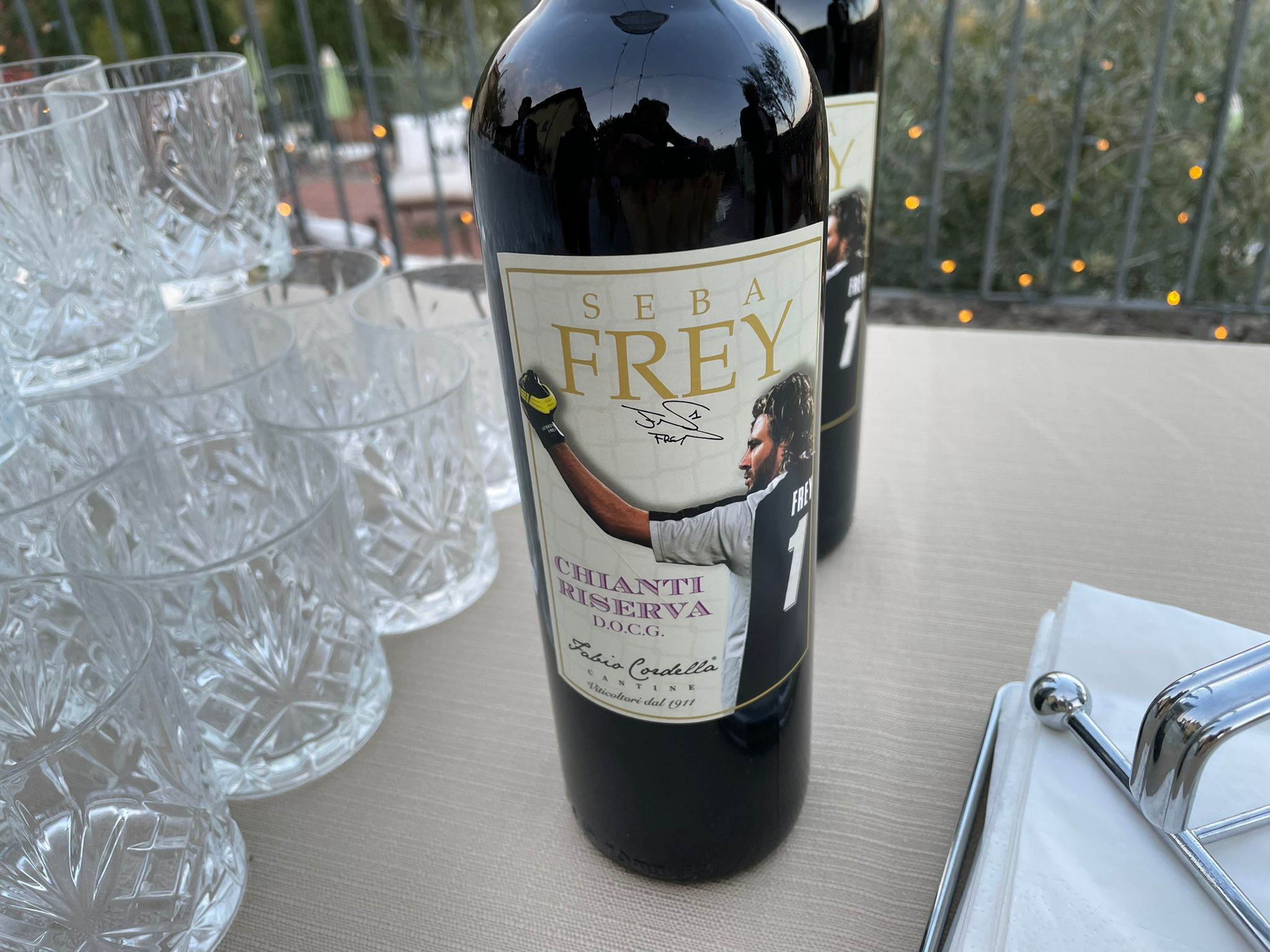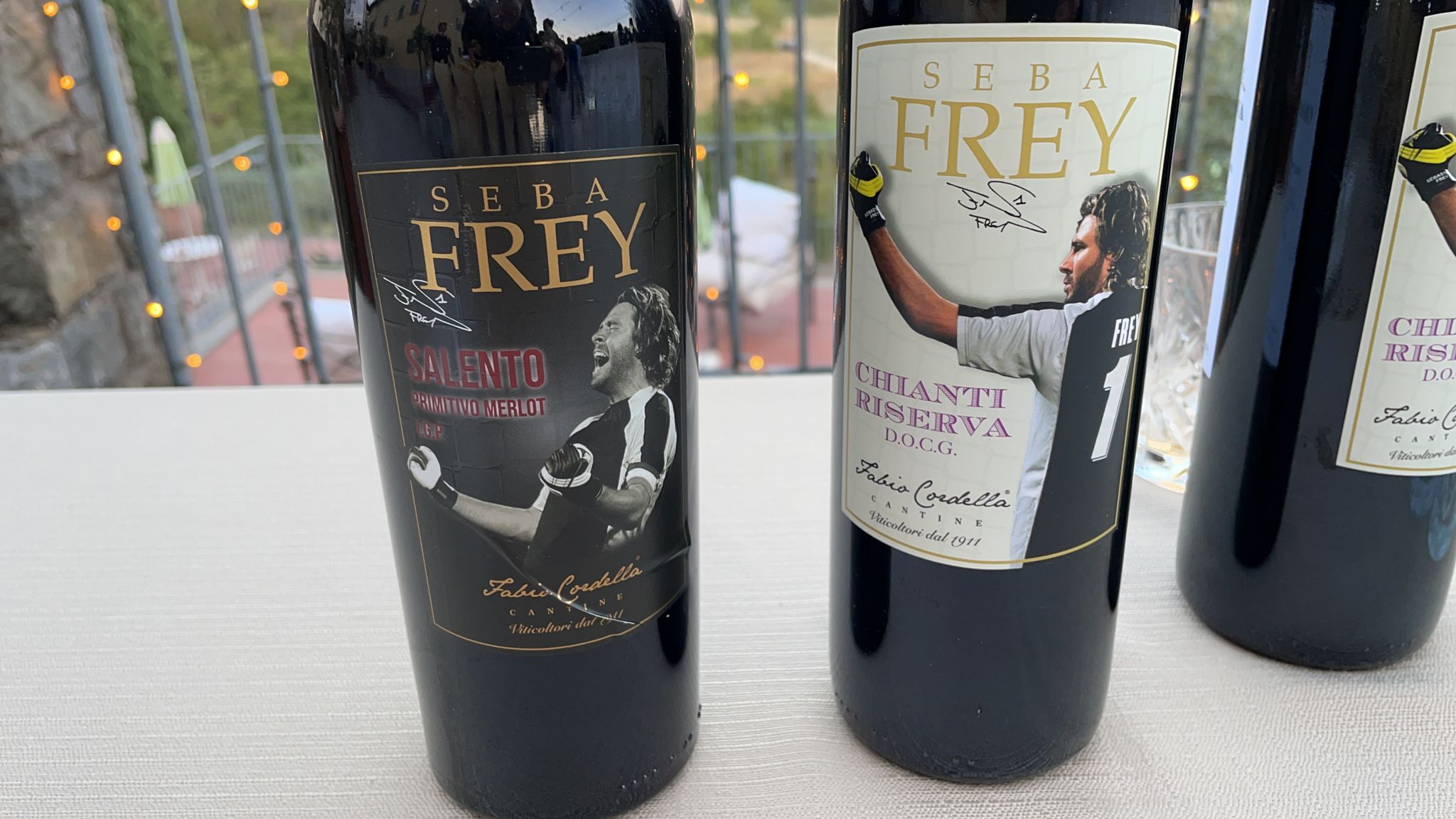Sebastien Frey non ha mai nascosto la sua passione per il vino, oltre che per il calcio. E oggi è il giorno della presentazione dei suoi nuovi vini, targati Frey: un Primitivo del Salento, un Chianti, un Pinot grigio e un Malvasia. Ecco alcuni scatti dalla presentazione, alla quale ha preso parte anche la bandiera della Fiorentina Giancarlo Antognoni oltre a Dario Dainelli.