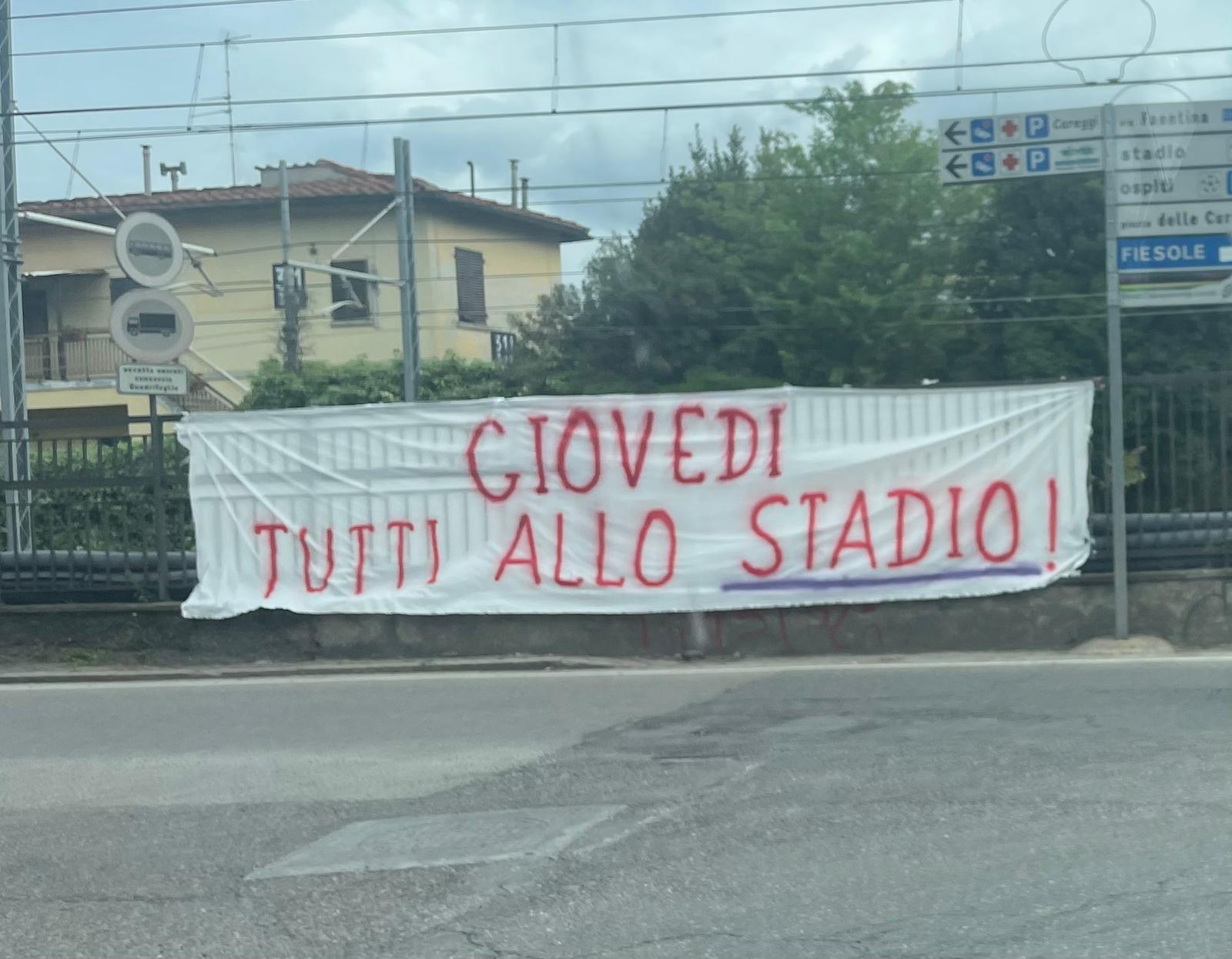 Non solo lo striscione esposto dalla Curva Fiesole ieri al termine di Fiorentina-Genoa: stanotte il tifo organizzato viola ha tappezzato la città di Firenze con una decina di lenzuoli con il medesimo contenuto, ovvero l'appello ad andare tutti allo stadio giovedì, in occasione della sfida di ritorno di Conference League tra la Fiorentina e il Viktoria Plzen: dal cavalcavia delle Cure, al sottopassaggio del Gignoro fino a Ponte a Greve e via Pistoiese sono stati tanti gli striscioni affissi. Ecco una carrellata di foto targate Firenzeviola.it: