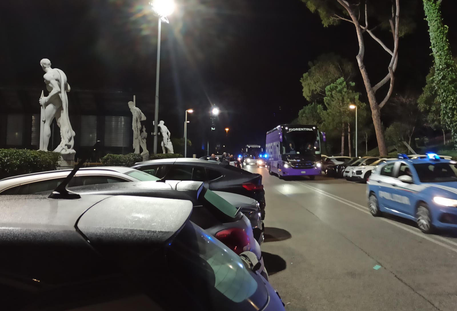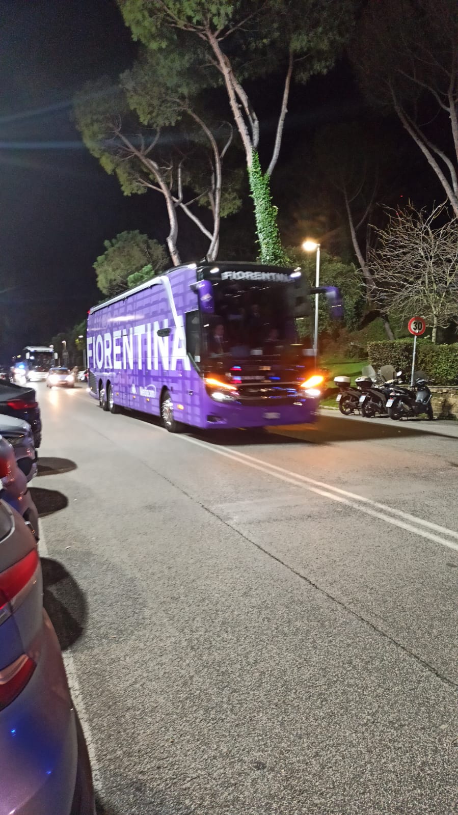 La Fiorentina è arrivata allo stadio Olimpico di Roma, dove alle 20:45 scenderà in campo per affrontare la Lazio. La squadra di Palladino proverà a invertire il periodo negativo in campionato, che la vede non vincere da più di un mese, precisamente dalla gara interna col Cagliari dell'8 dicembre. Quanto alla formazione, il principale dubbio che riguarda la Fiorentina è relativo al modulo. Questo il pullman viola, giunto in questi minuti nei pressi dell'Olimpico: