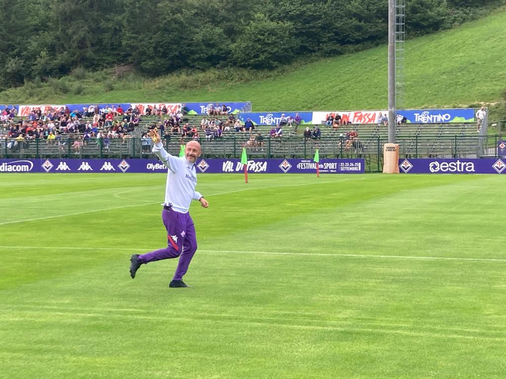 È appena passato Vincenzo Italiano sotto la tribunetta che accoglie la stampa sul campo del centro sportivo "Cesare Benatti" di Moena. Il mister ha salutato i presenti correndo verso la palestra assieme al suo match analyst, Stefano Firicano. Questo lo scatto di FirenzeViola.it: