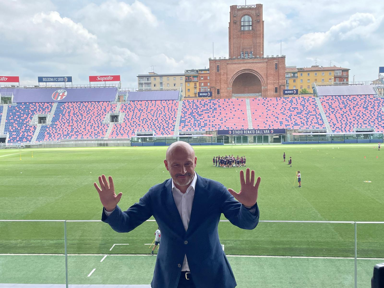 Finita la presentazione in conferenza stampa, per Vincenzo Italiano è stato il momento delle foto di rito al Dall'Ara di Bologna con tutta la dirigenza rossoblu schierata al suo fianco, per le immagini con alle spalle la celebre torre di Maratona. Sorrisi e abbracci per la nuova avventura dell'ex tecnico della Fiorentina, ecco le foto di Firenzeviola.it: