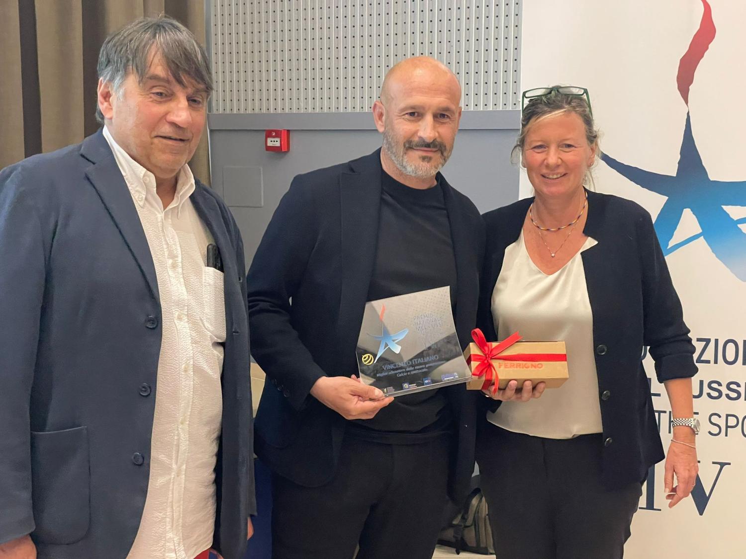 Questo pomeriggio nel corso del workshop promosso dal Movimento Cristiano Lavoratori e col patrocinio dell'Ussi si è tenuta la premiazione l'allenatore della Fiorentina, Vincenzo Italiano, che è stato insignito del riconoscimento "Inside The Sport". A premiarlo c'era la giornalista del Tgr Rai Toscana, Sara Meini. Queste alcune foto realizzate dagli inviati di FirenzeViola.it a Coverciano: