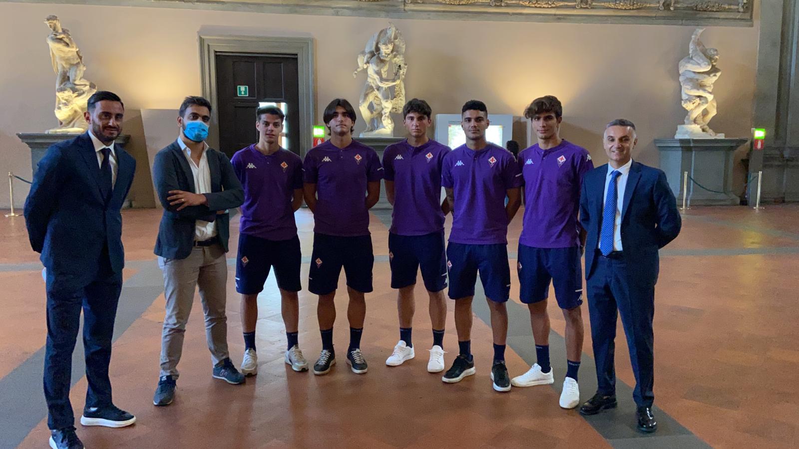 Onoreficenza speciale per i ragazzi della Fiorentina Primavera, protagonisti della recente vittoria nella finale di Coppa Italia di categoria contro i pari età dell'Hellas Verona. Infatti è presente una delegazione di giovani gigliati, composta dall'allenatore Aquilani e dai calciatori N. Pierozzi, Ponsi, Dalle Mura, Dutu e Spalluto ed accompagnata dal dirigente Angeloni, a Palazzo Vecchio. Ad accoglierli l'assessore allo sport Cosimo Guccione. Eccoli, nello scatto di FirenzeViola.it.
