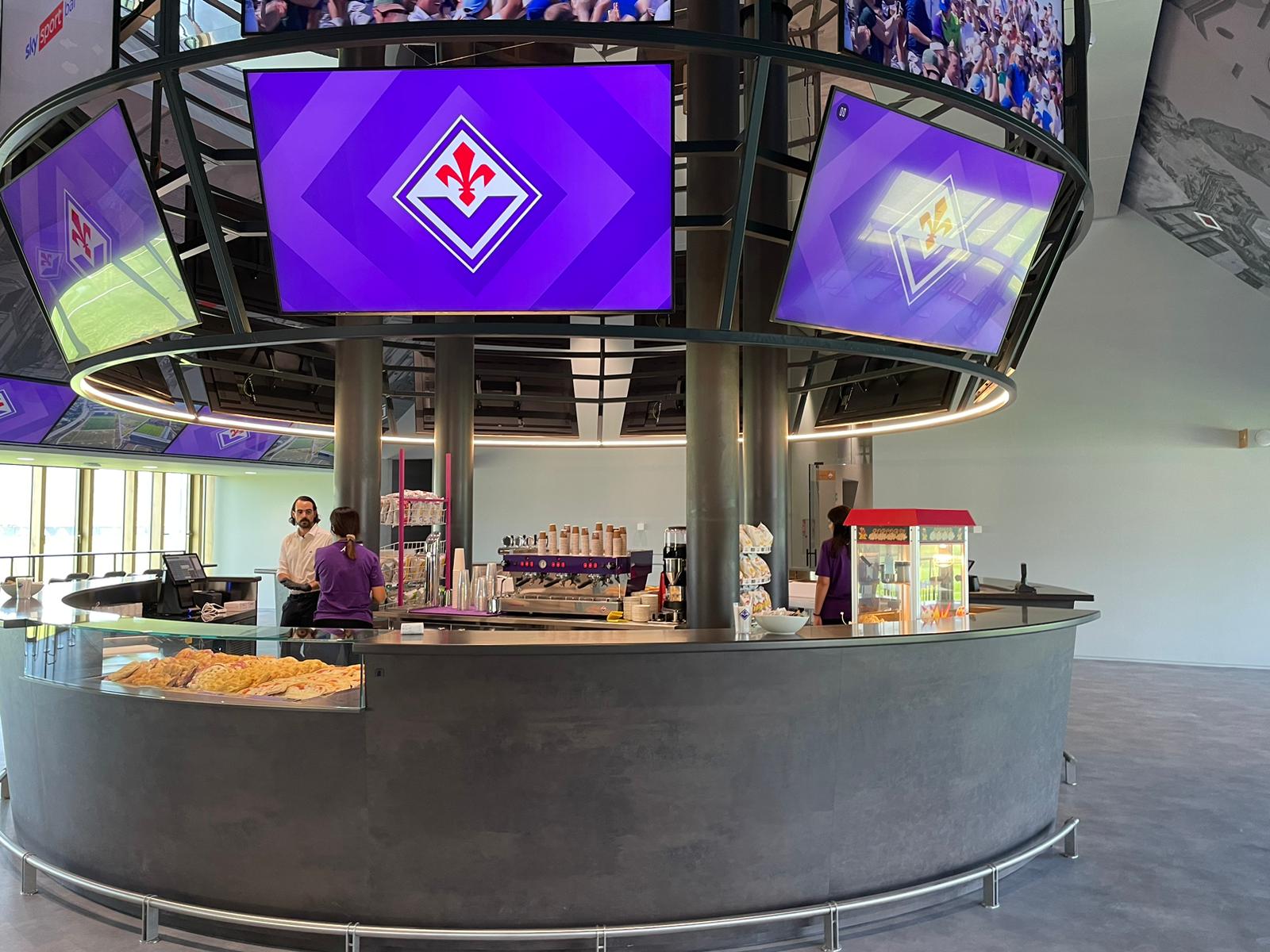 Manca sempre meno al fischio d'inizio di Fiorentina-Milan Primavera, storica prima gara a porte aperte del Viola Park. Intanto, tra le zone da segnalare all'interno del nuovo centro sportivo viola, c'è l'immensa e meravigliosa area ristoro dedicata ai tifosi presente nella pancia del mini-stadio Curva Fiesole. Una zona che, con schermi e tavolo centrale a forma di cerchio, ricorda molto la Borsa di New York. Ecco le foto scattate da FV: