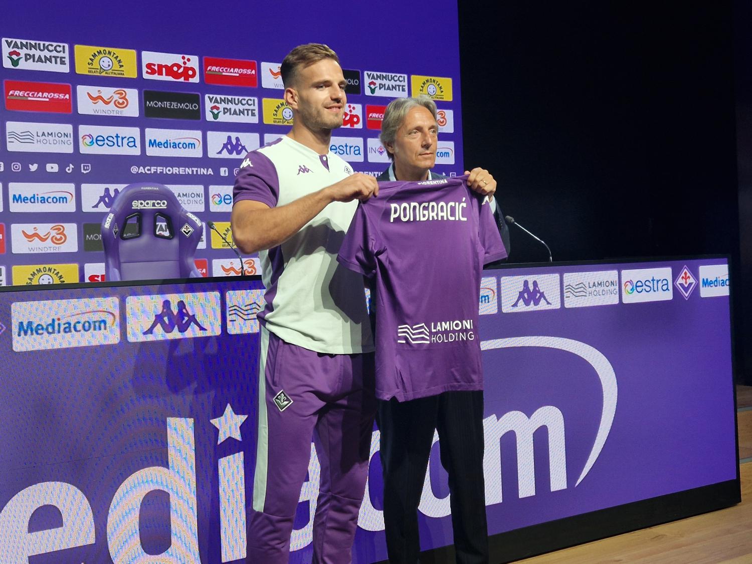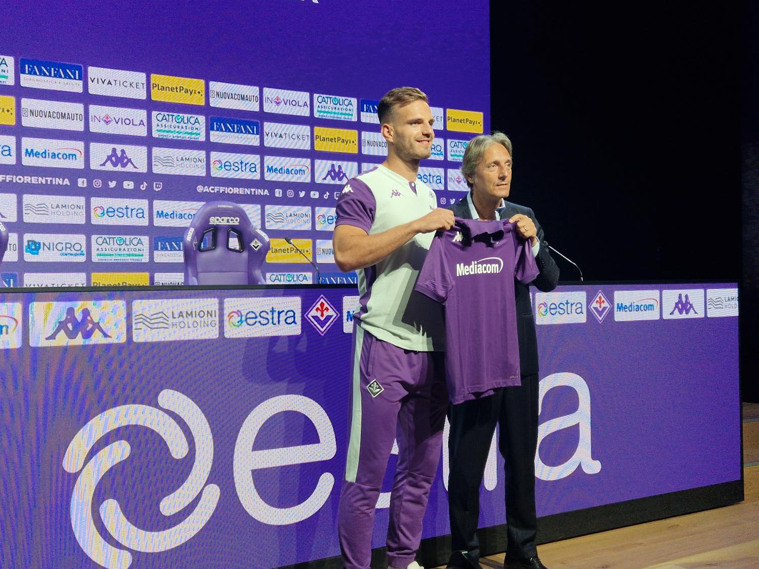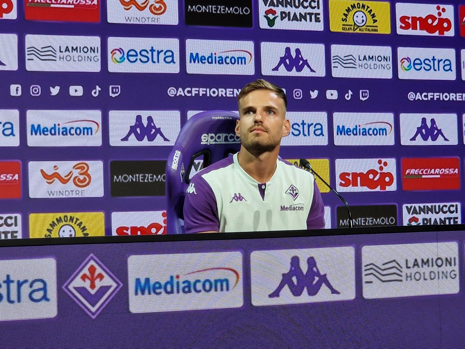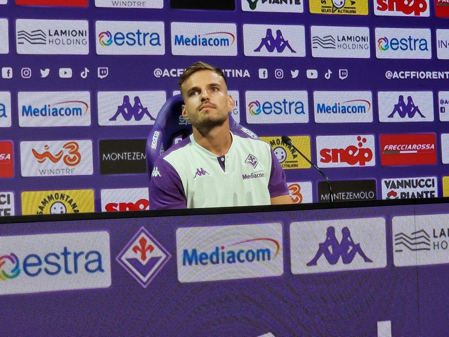 Conferenza stampa di presentazione per Marin Pongracic. Il nuovo difensore della Fiorentina, arrivato a luglio per 15 milioni più bonus dal Lecce, ha preso la parola in conferenza stampa al Viola Park per rispondere alle domande dei giornalisti. Ecco alcuni scatti realizzati da FirenzeViola.it: