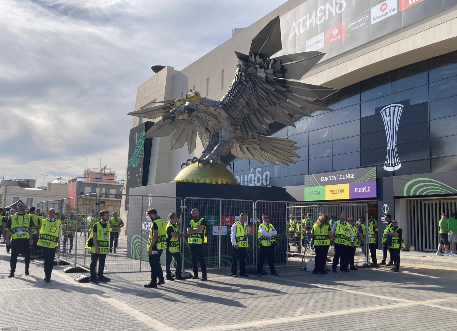 A poche ore dall'inizio della finale di Conference League tra Fiorentina e Olympiacos, con i tifosi che tra poco inizieranno ad avvicinarsi allo stadio le forze dell'ordine stanno prendendo tutte le misure del caso per evitare contatti tra le varie tifoserie, soprattutto quelle di Olympiacos e AEK Atene. Addirittura è stato predisposto l'utilizzo di vari steward a protezione del simbolo della formazione ateniese in maglia gialla fuori dalla OPAP Arena da possibili attacchi dei tifosi dell'Olympiacos. Di seguito le immagini di FirenzeViola.it: