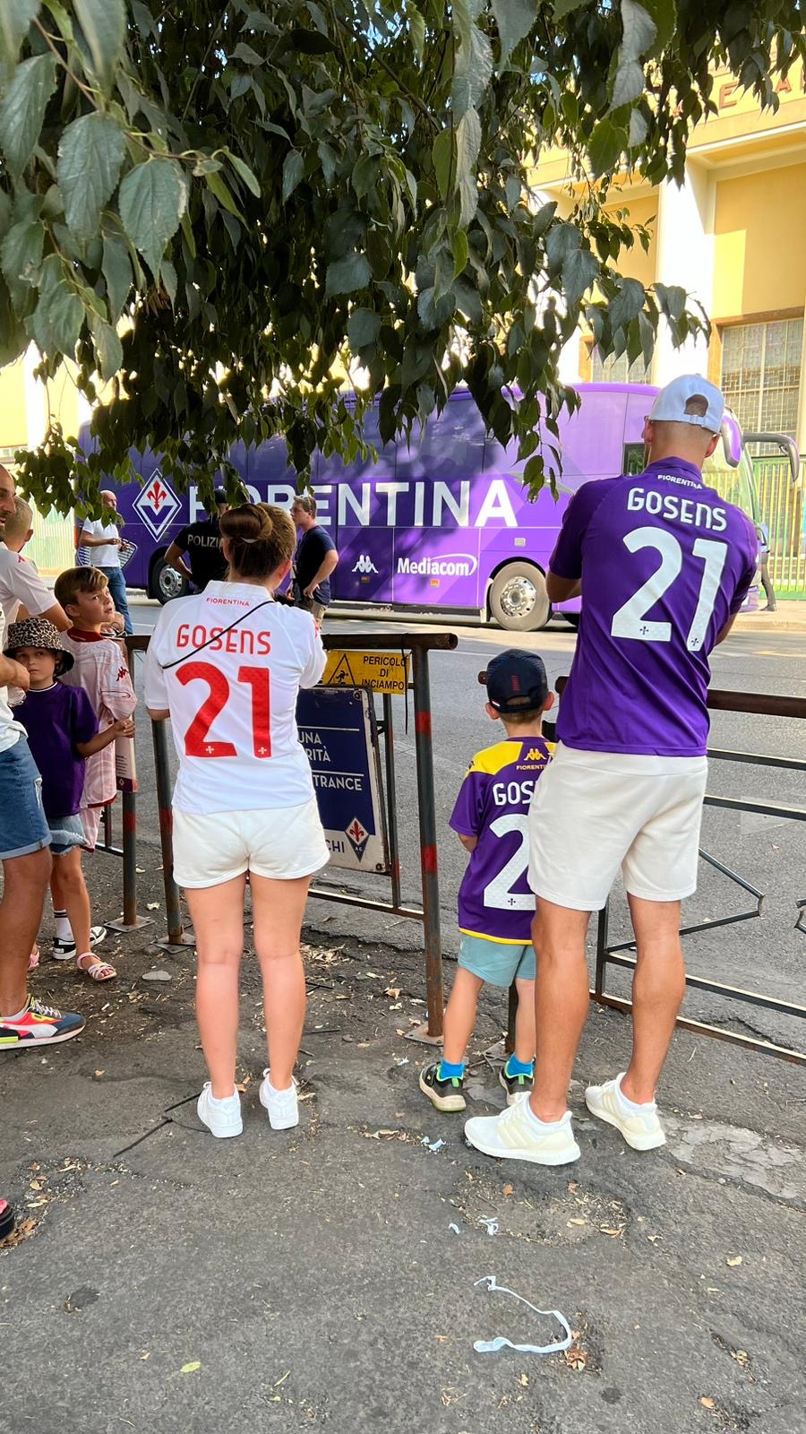 Robin Gosens è arrivato solo ieri in Italia ed oggi è stato subito convocato da Palladino. L'acquisto del giocatore tedesco, ex Atalanta e Inter, è stato molto apprezzato dai tifosi viola e lo dimostrano le maglie viola indossate allo stadio con il suo nome, come mostra l'immagine di Firenzeviola.