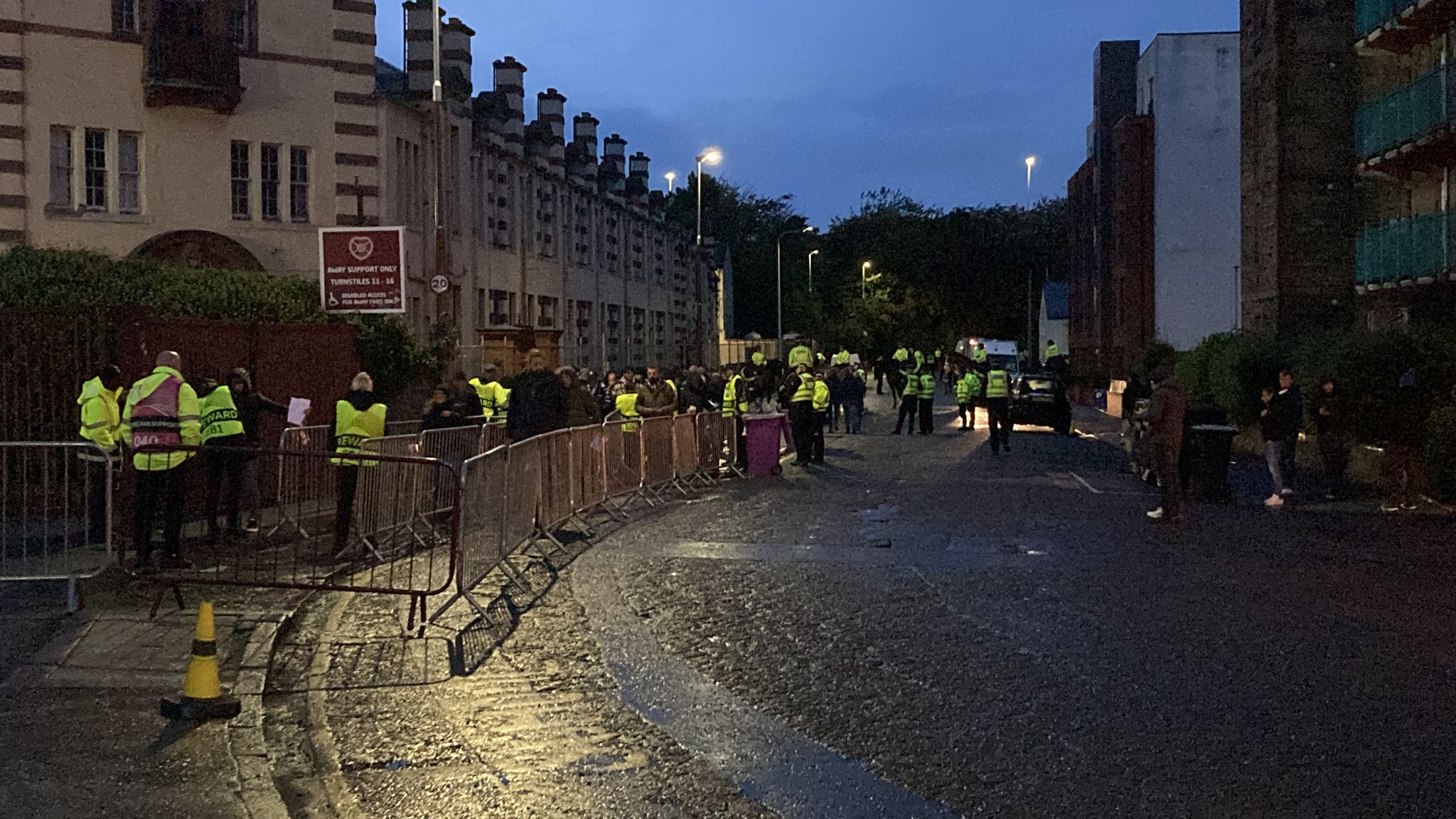 Manca sempre meno alla sfida tra Hearts e Fiorentina, gara valida per la terza giornata dei gironi di Conference League. In questi minuti sono arrivati al Tynecastle Stadium i tifosi viola che, scortati dalla polizia, si sono presentati fuori dall'impianto cantando cori. Di seguito la foto realizzata da FiorenzeViola.it: