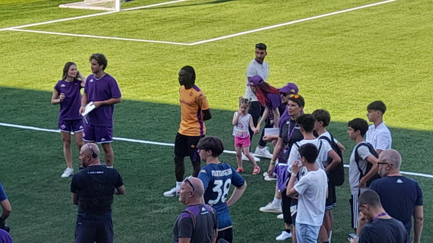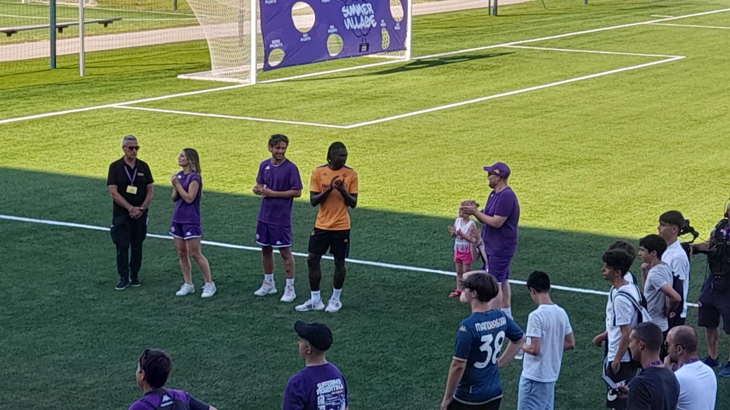 E' finita da poco la conferenza di Moise Kean che si è presentato ufficialmente alla stampa direttamente dal Viola Park. Il calciatore subito dopo si è diretto al Cattolica Summer Village dove la Fiorentina ha messo a disposizione una serie di giochi col pallone per intrattenere i tifosi. Kean ha firmato alcuni autografi e fatto delle foto con i bambini presenti, prima di mettersi a vedere lo spettacolo organizzato dagli intrattenitori del Village. Il neo attaccante viola si è anche cimentato con una delle sfide organizzate per i tifosi: le freccette però con il pallone da calcio di spugna. Qui sotto alcune foto e video realizzate da FirenzeViola.it.