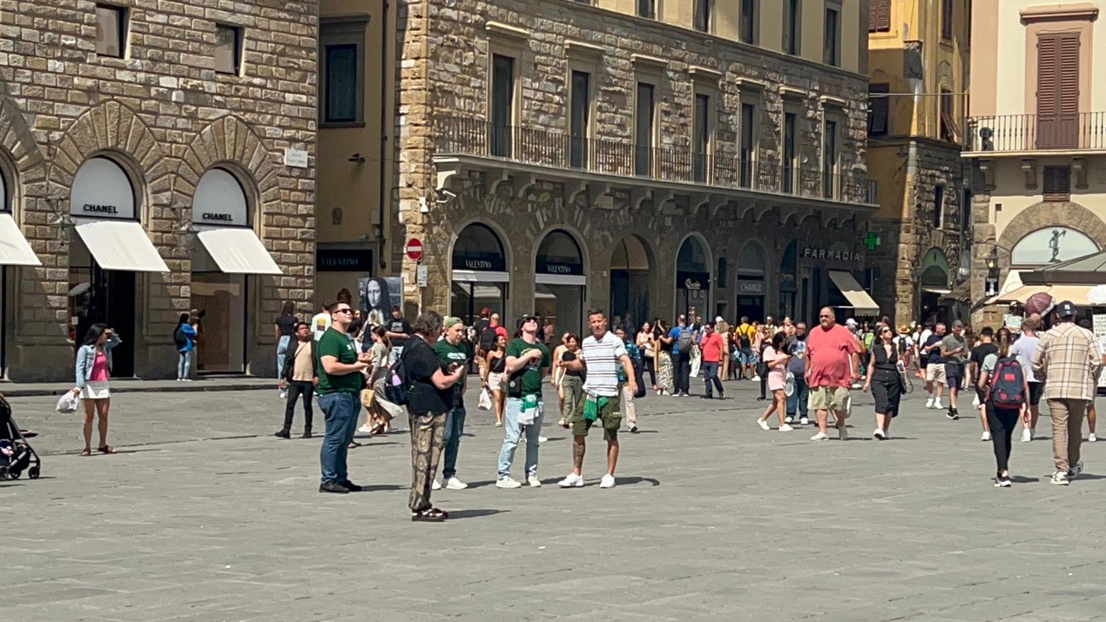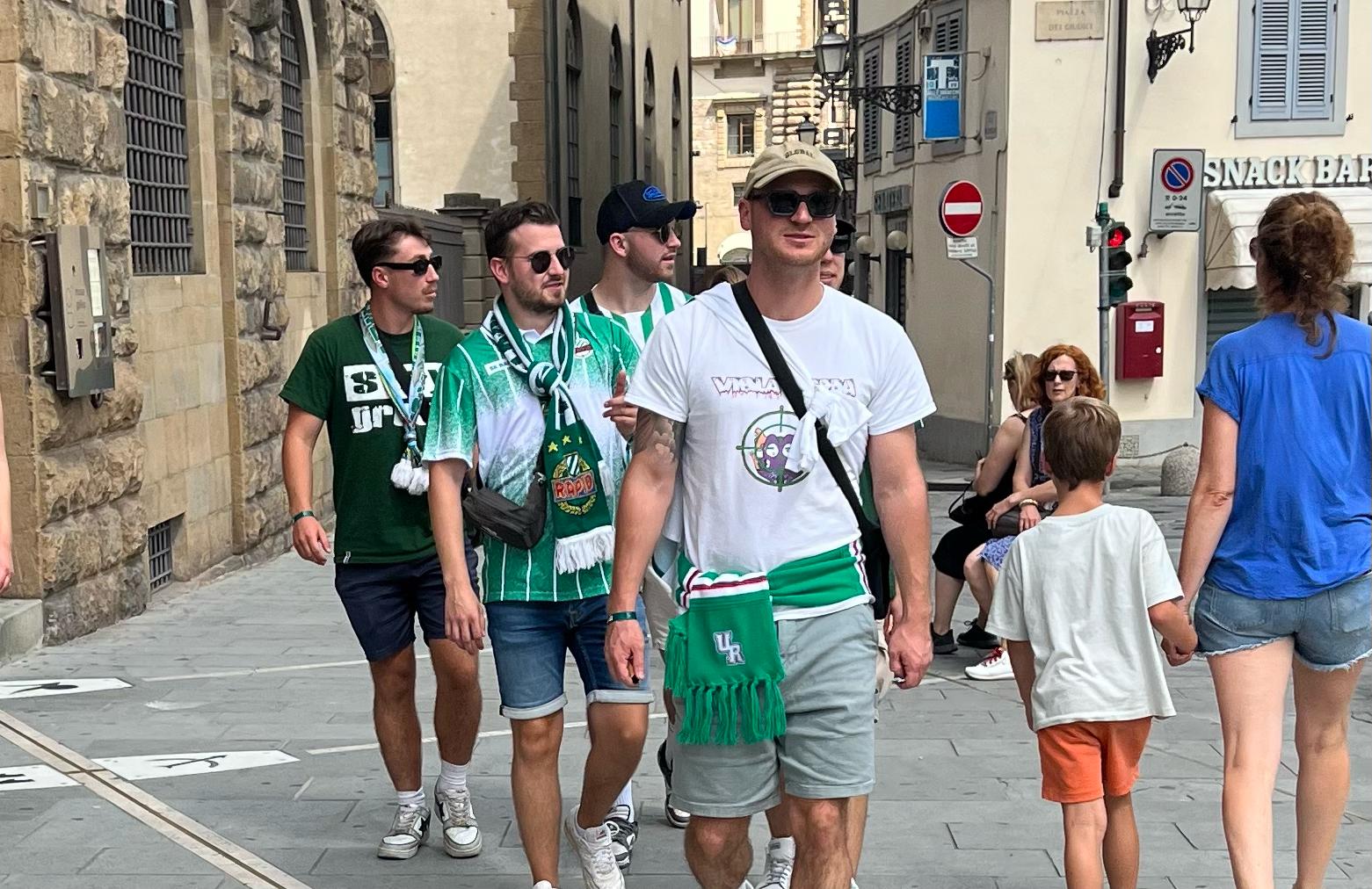 Comincia ad aumentare il numero dei tifosi del Rapid Vienna presenti a Firenze in vista del match di questa sera contro la Fiorentina. Come mostrano le immagini realizzate da Firenzeviola.it, sono molti i sostenitori biancoverdi che hanno preso d'assalto - ma fin qui in modo pacifico - le vie del centro storico della città. Dai lungarni a Piazza della Signoria fino al Duomo, ecco le foto e i video della marea austriaca in città: