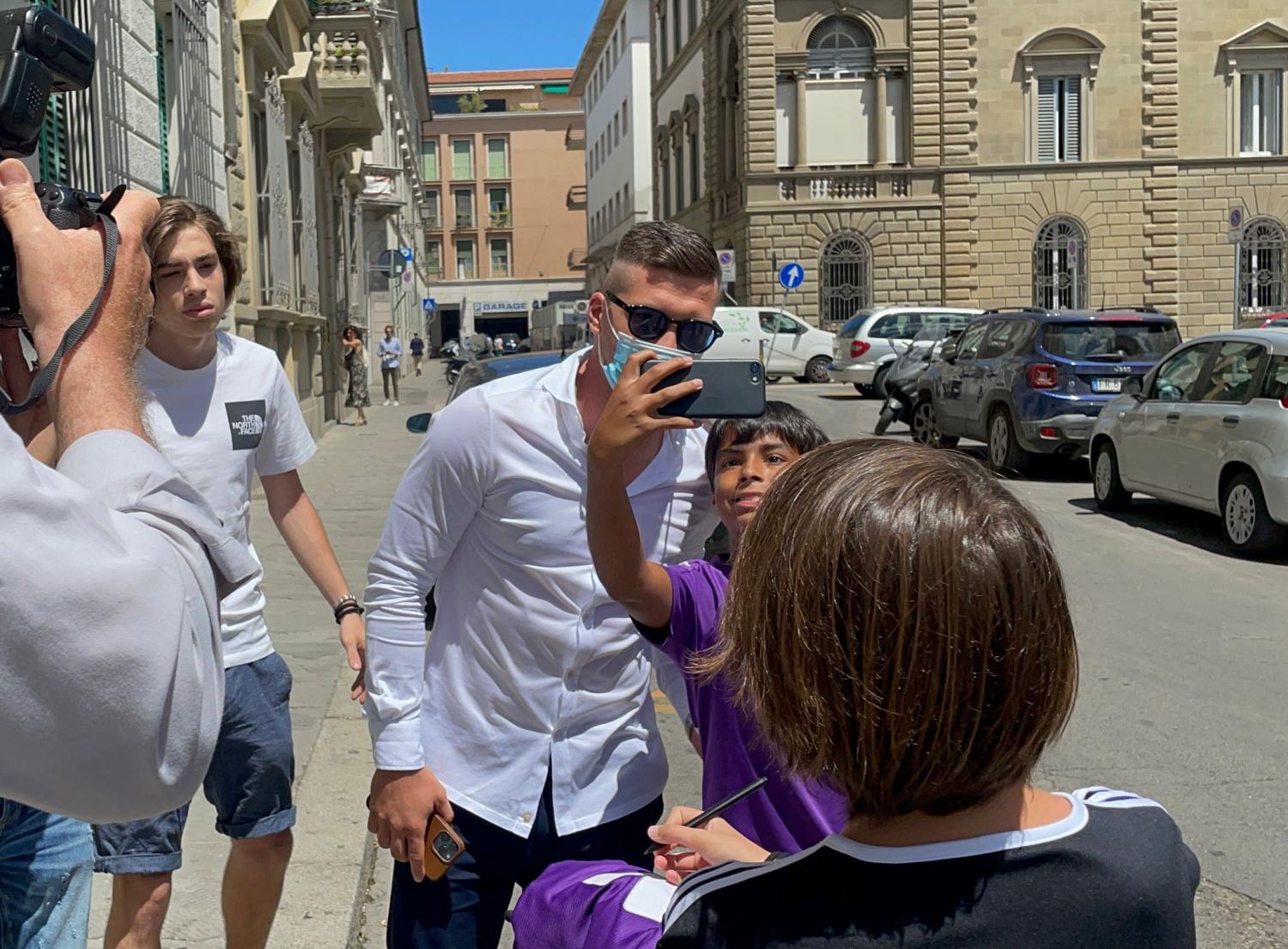 È iniziato il Luka Jovic day. L'attaccante classe '97, in arrivo dal Real Madrid, è atterrato in tarda mattinata a Firenze, per poi dirigersi alla clinica Fanfani per sostenere le visite mediche di rito con la Fiorentina. Dopodiché firmerà un contratto che lo legherà per i prossimi due anni (più opzione per i due successivi) al club di viale Manfredo Fanti. Queste le immagini del ventiquattrenne che si è fermato a salutare i suoi nuovi tifosi, confezionate da FirenzeViola.it:
