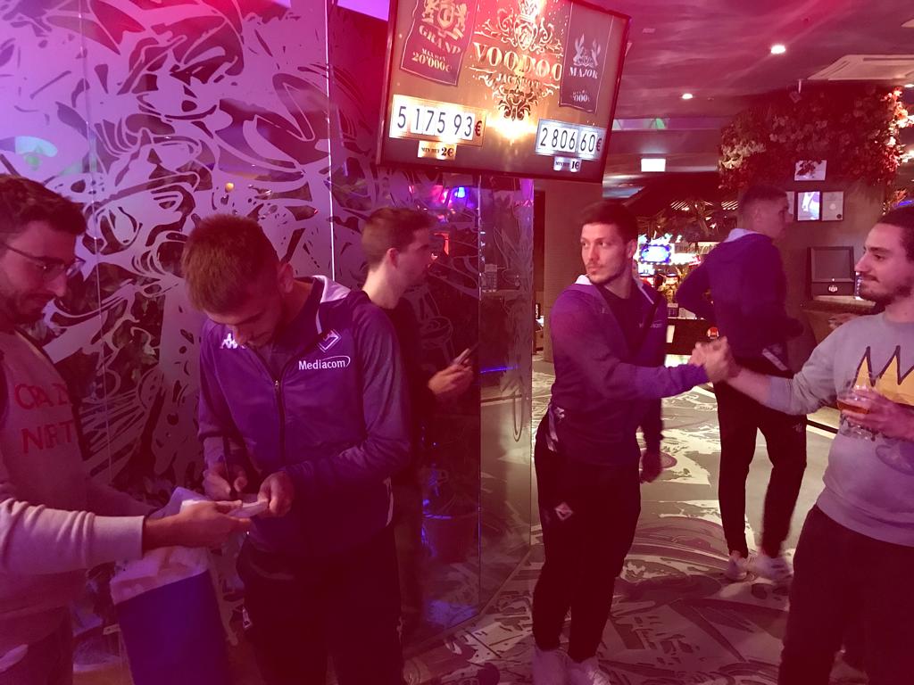 Alcuni calciatori della Fiorentina si sono recati presso l'OlyBet Sports Bar al Casinò di Riga per una sessione di autografi e di foto con i tifosi viola presenti. Queste alcune immagini, realizzate dagli inviati di FirenzeViola.it, dei giocatori gigliati all’interno della struttura: