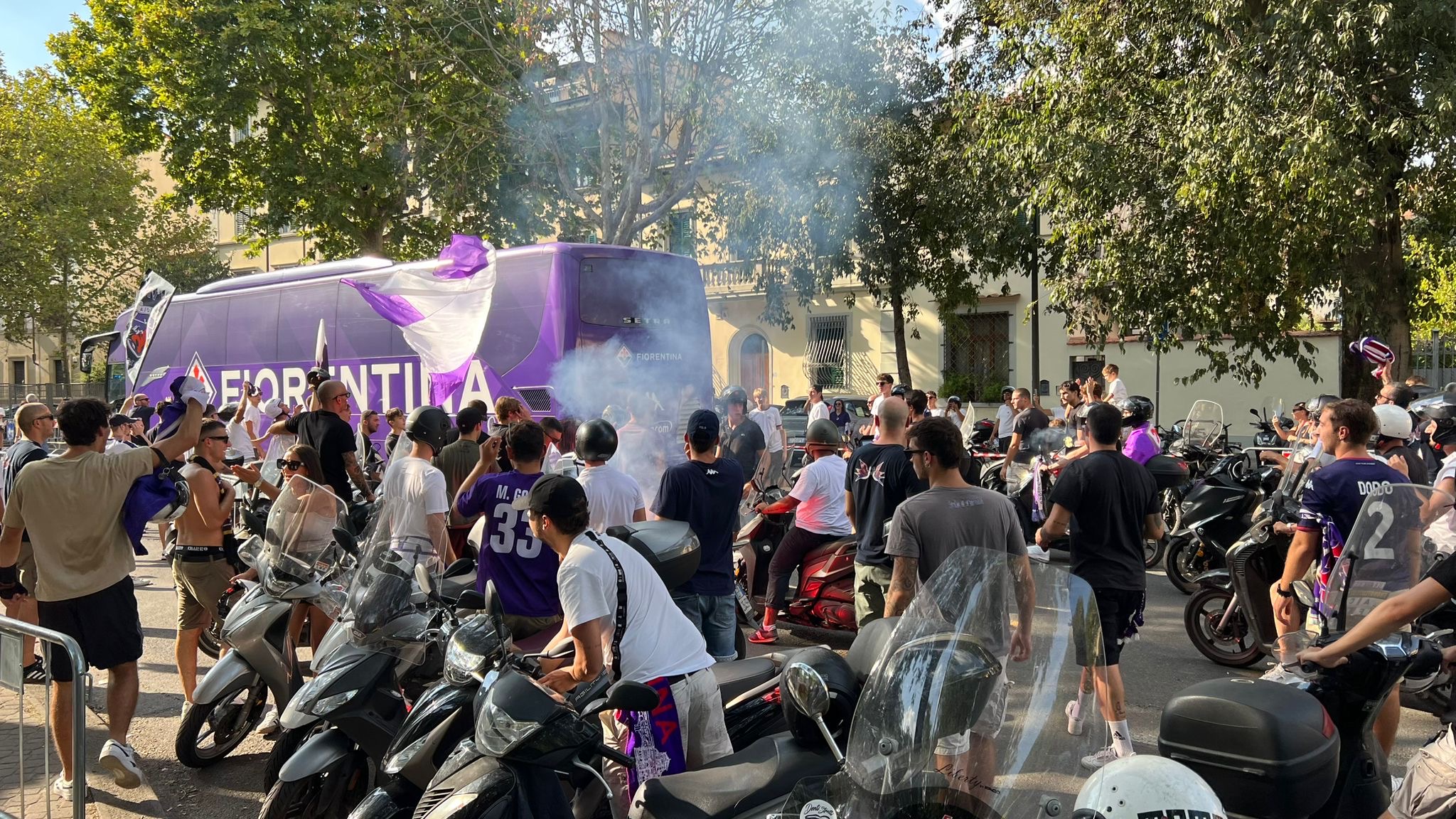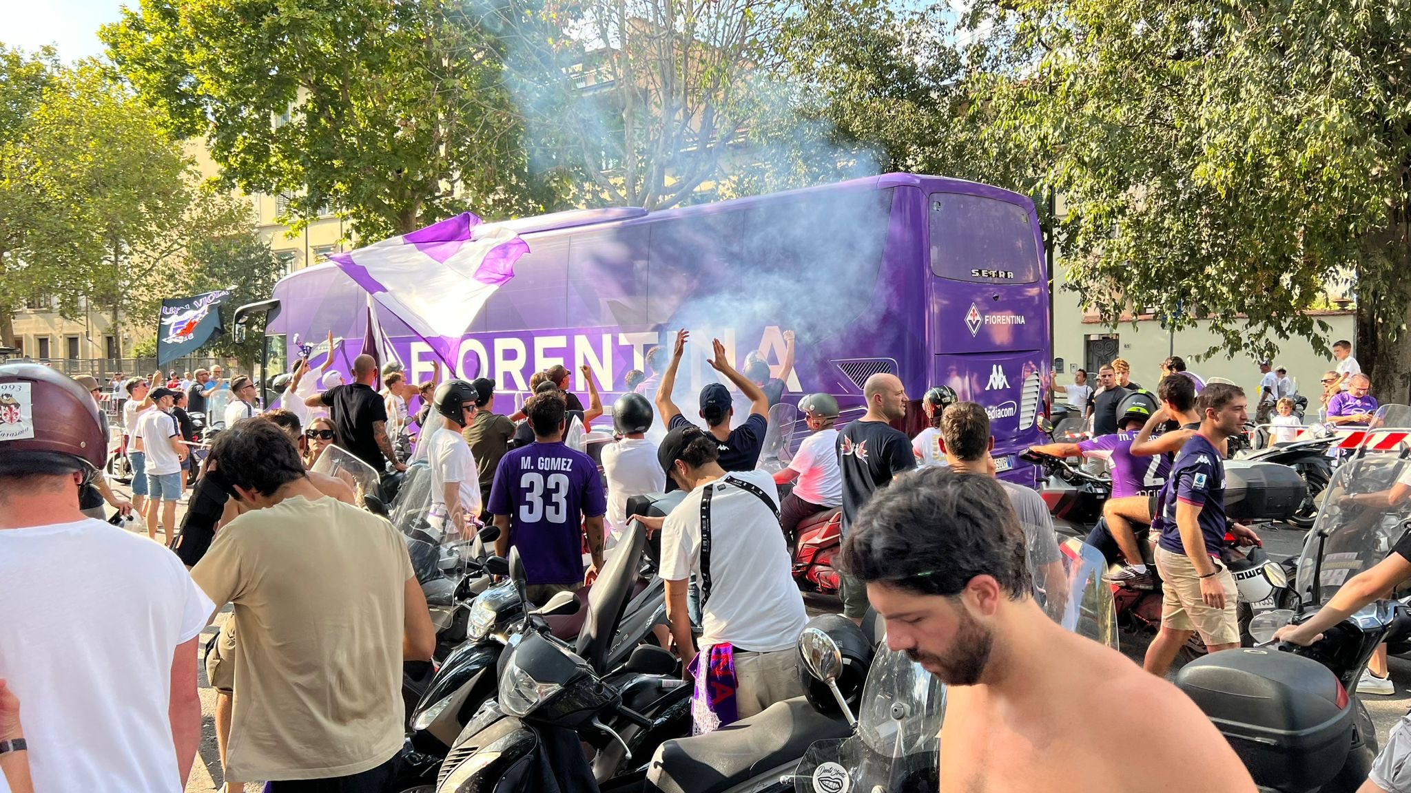 Come avveva annunciato la tifoseria organizzata, il pullman viola è stato scortato dal Viola Park al Franchi dai supporters gigliati in motorino. Lunga coda dietro al pullman e grande entusiasmo all'arrivo come mostrano il video e le foto di Firenzeviola.