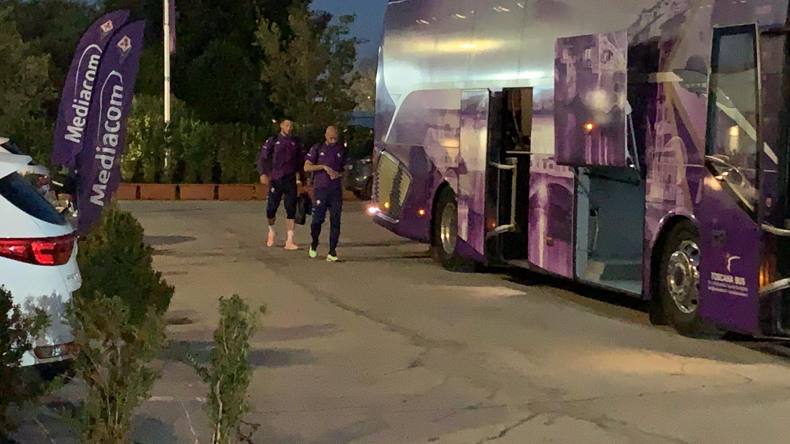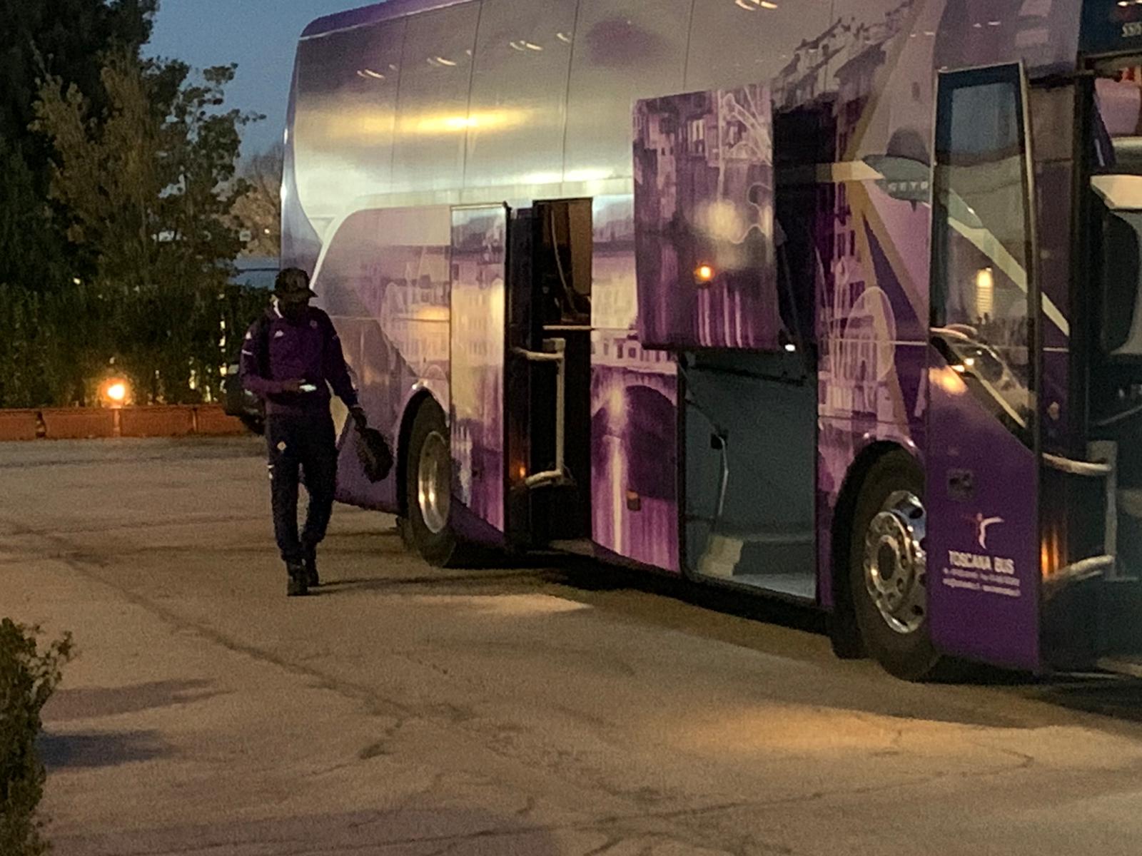Finito l'allenamento pomeridiano, la Fiorentina, secondo quanto stabilito dalla società, andrà in ritiro a tempo indeterminato: per ora fino a mercoledì, quando si farà una nuova valutazione. Ecco le immagini registrate da Firenzeviola mentre la squadre sale sul pullman viola. All'uscita dal centro sportivo tra l'altro qualche tifoso ha spronato la squadra a dare di più.