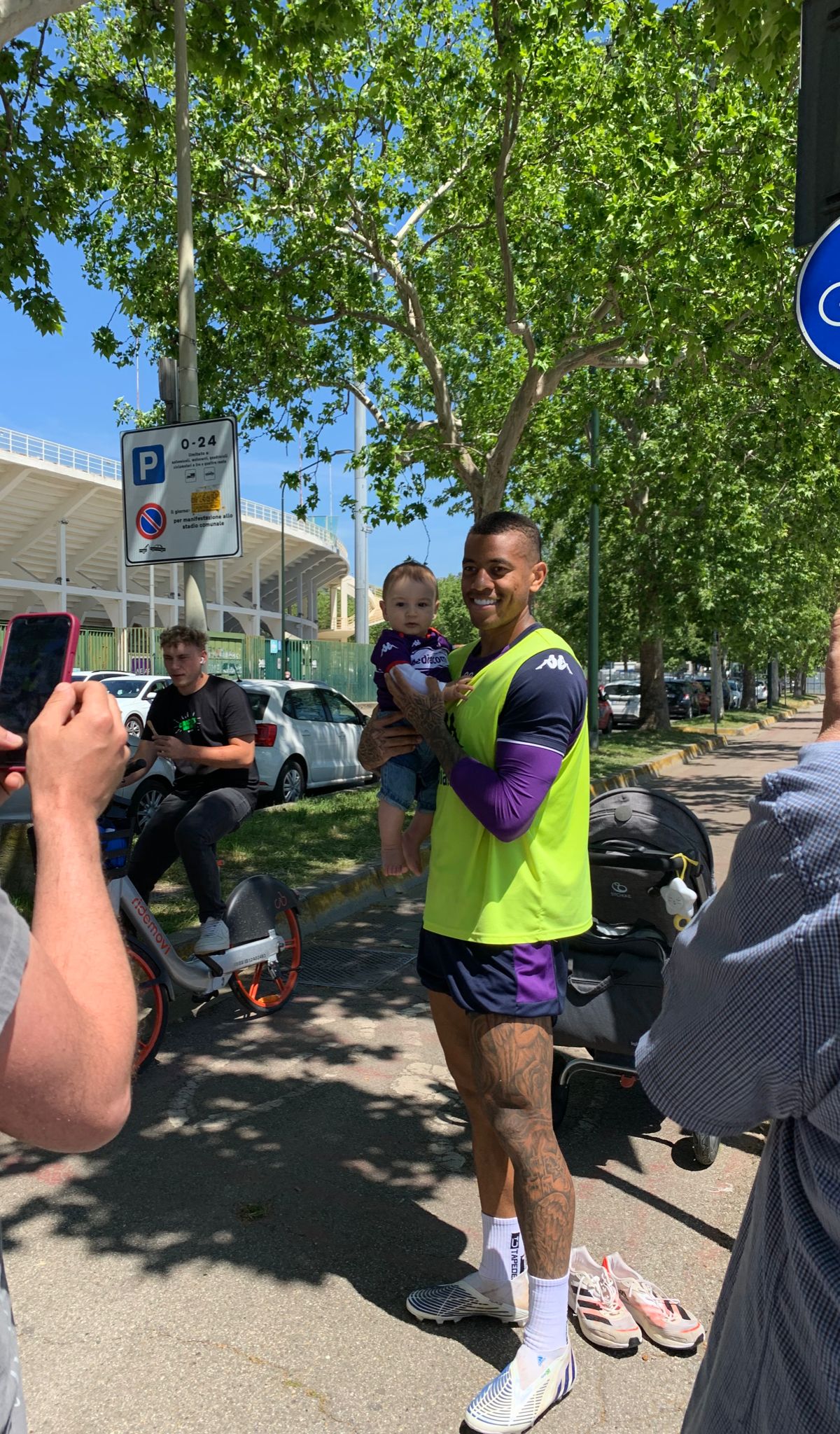 Terminato qualche minuto fa l'allenamento mattutino della Fiorentina, che si è tenuto al Franchi. Dopo la seduta, momenti di intrattenimento e sorrisi con alcuni dei calciatori usciti dallo stadio: come potete notare dagli scatti realizzati da FirenzeViola.it, ecco dunque Igor, Cabral, Venuti, Callejon e Piatek (ma tutti si sono stati disponibili a fermarsi) intrattenersi con alcuni bambini presenti. Tra questi il grande appassionato di calcio Niccolò arrivato con il padre da Pesaro, mentre il più piccolino ha strappato grandi sorrisi a Igor: eccoli posare in alcune foto (autorizzate alla pubblicazione dai genitori) assieme a loro.