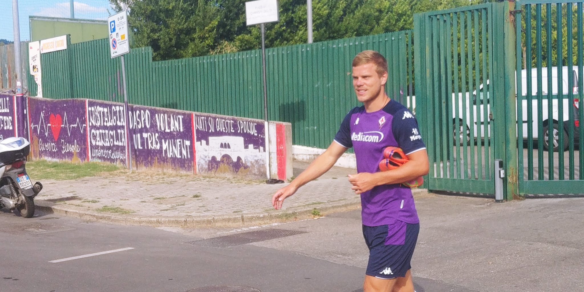 Allenamento al via tra pochi minuti per la Fiorentina, che svolgerà una seduta congiunta con la San Giovannese e poi una mini partitella sul terreno di gioco dello stadio Franchi. A tre giorni dall'inizio del campionato contro la Roma, si tratta dell'ultimo test match prima del via e Italiano potrà contare su tutti i componenti della rosa, eccezion fatta per German Pezzella (che come noto è già a Siviglia). Presente Pol Lirola così come Dusan Vlahovic, scortato a uomo da Stefano Melissano (collaboratore tecnico di Italiano e uomo di riferimento in squadra del ds Pradè). Ecco le foto e il video di FV: