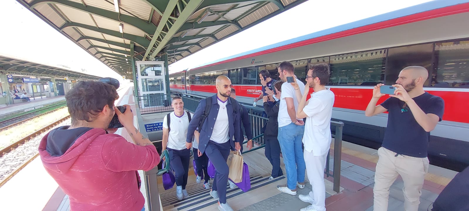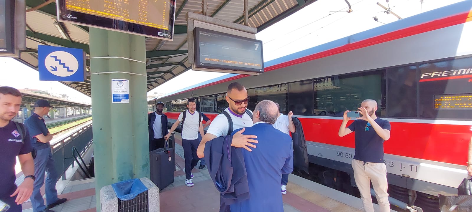 La Fiorentina è in partenza per Roma, dove domani (ore 21) si giocherà la finale di Coppa Italia contro l'Inter. Italiano ed i suoi sono arrivati pochi minuti fa alla stazione di Campo di Marte, dove a breve prenderanno un treno in direzione della capitale. Volti concentrati per tutto il gruppo squadra, che è stato salutato dal presidente Rocco Commisso; il numero uno dei viola ha abbracciato gran parte dei membri della spedizione per Roma, a cui lui stesso si aggregherà insieme all'alta dirigenza. Presente in gruppo anche Salvatore Sirigu, infortunato di lungo corso ma in partenza anche lui per dar man forte alla squadra. Ecco gli scatti esclusivi di FirenzeViola.it