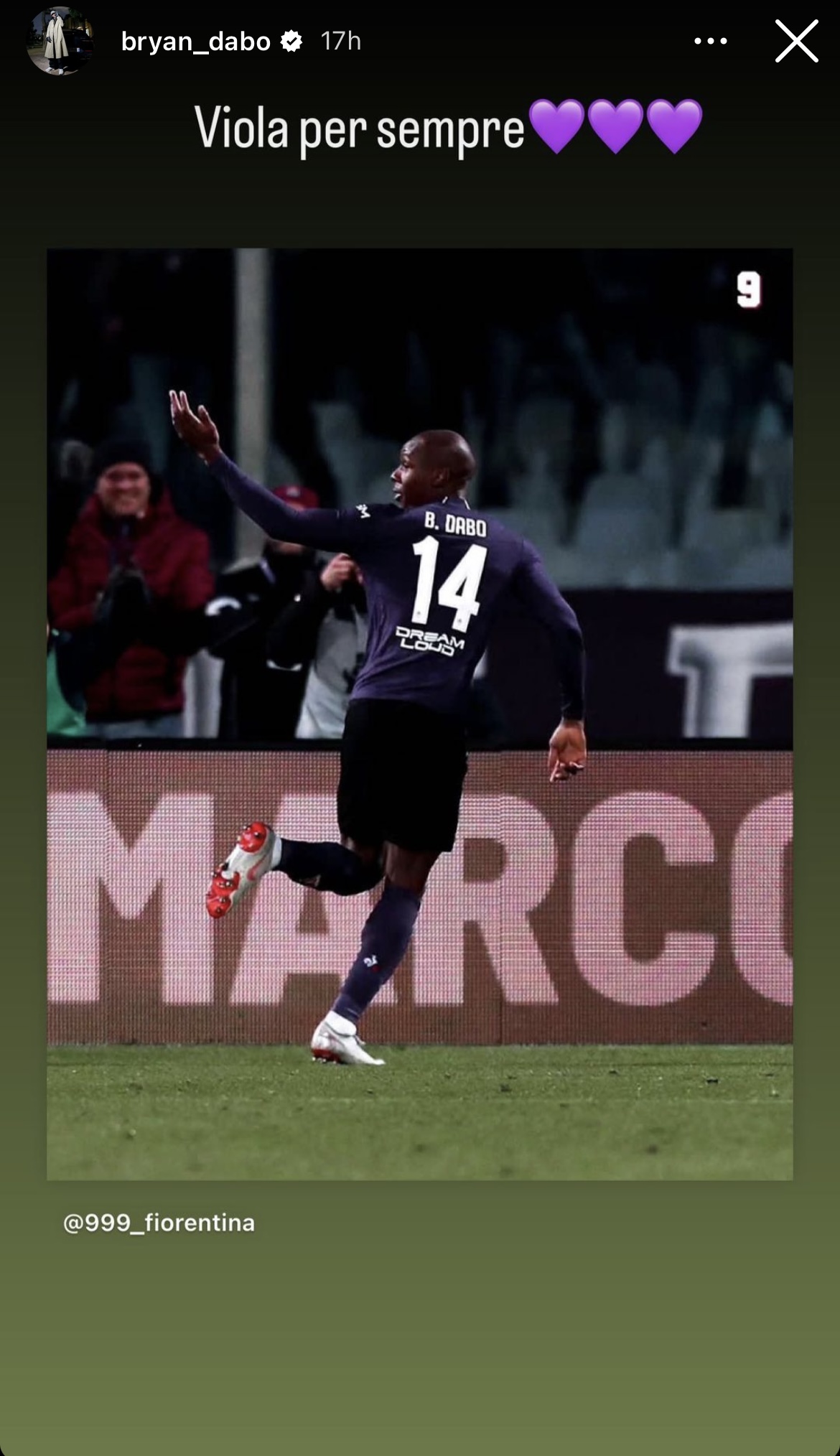 La Fiorentina continua a faticare al Franchi quando davanti si trova l'Empoli. Uno degli ultimi successi interni della società gigliata porta la firma dell'ex centrocampista della Fiorentina, Bryan Dabo, andato a segno nella vittoria per 3-1 nell'annata 2018/19. Il centrocampista ha condiviso sulle proprie storie un post in maglia viola aggiungendo la scritta: "Viola per sempre". Di seguito il post: