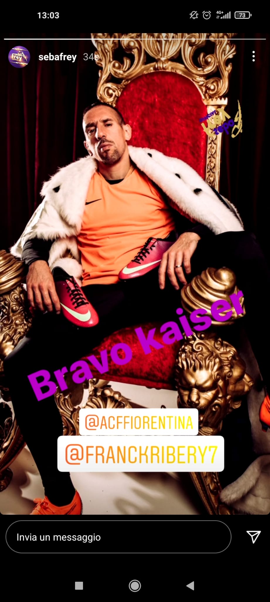 Ieri sera contro il Torino Franck Ribery ha ritrovato il gol dopo ben sette mesi. A celebrarlo è stato anche l’ex portiere della Fiorentina, Frey, tramite il proprio profilo ufficiale Instagram, con una Stories con su scritto: “Bravo Kaiser”. Questa la Stories: