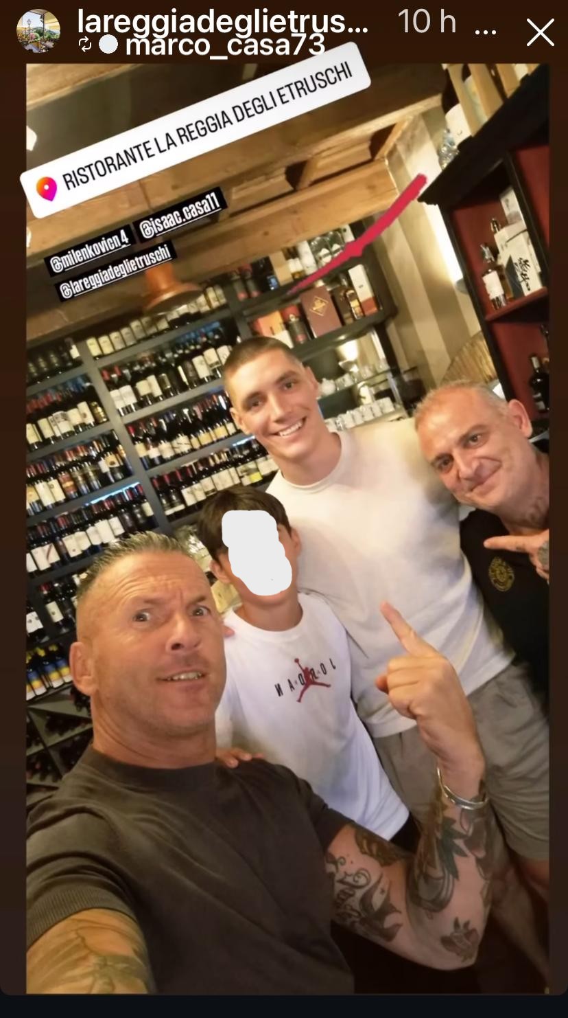 Nikola Milenkovic non dimentica Firenze, e in attesa della ripartenza della stagione con il suo Nottingham Forest ha deciso di trascorrere qualche giorno nella città che lo ha visto crescere come uomo e come calciatore. Una foto pubblicata sui social dal ristorante di Fiesole "La Reggia degli Etruschi" mostra il difensore serbo con qualche tifoso che gli ha chiesto una foto in onore dei vecchi tempi. E Milenkovic si è prestato sorridente.