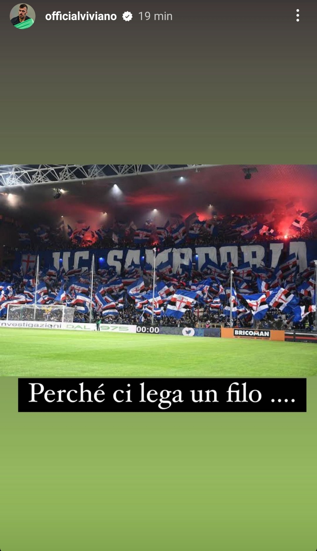 Attraverso il proprio profilo Instagram, l'ex portiere tra le altre della Fiorentina, Emiliano Viviano ha condiviso una foto della curva della Sampdoria, club al quale è legato in virtù dei 4 anni trascorsi con la maglia blucerchiata, con la scritta: "Perché ci lega un filo". La Samp è retrocesse matematicamente in Serie B dopo la sconfitta con l'Udinese.