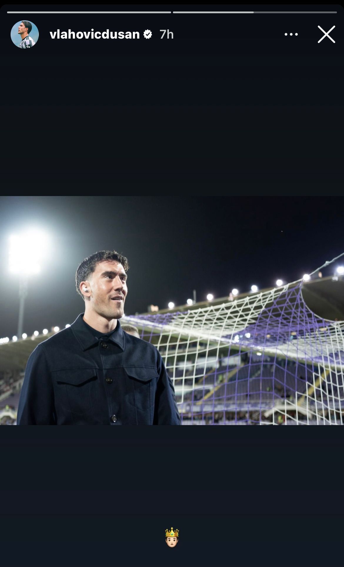 Non si fermano le provocazioni di Dusan Vlahovic nei confronti del proprio ex pubblico. L'attaccante serbo, infatti, dopo essersi becchettato con la Ferrovia durante il riscaldamento e aver fatto il gesto del pollice alzato verso la Fiesole prima di rientrare nel tunnel degli spogliatoi al termine della partita, ha continuato la sua "guerra" personale anche su Instagram, prima postando una frase che dice "qualunque sia la situazione, non lasciare mai che le tue emozioni prevalgano sulla tua intelligenza" e poi postando un'immagine in cui l'attaccante bianconero guarda in segno di sfida i tifosi viola e in cui vi è l'emoticon del re.