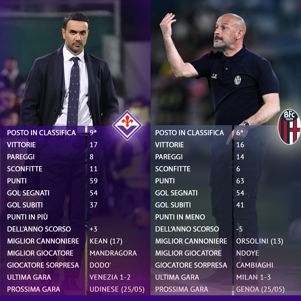 E’ probabile che l’ex allenatore viola, dopo il trionfo in Coppa Italia, presenti a Firenze una squadra con qualche novità. Con Pobega, per esempio, con Calabria e anche con Casale che Italiano all’Olimpico ha messo dentro a metà ripresa per blindare il risultato con la difesa a cinque. Lo aveva fatto anche con la Fiorentina, due anni fa a San Siro contro l’Inter, uno a zero per i viola e a un quarto d’ora dalla fine dentro Ranieri al posto di Ikoné per schierare la difesa a cinque, però a Bologna, anche se ogni tanto ricade nella...passione della difesa alta (è successo venerdì scorso a San Siro contro il Milan quando la sua squadra stava vincendo uno a zero), ha tolto gli eccessi. I tre anni di Firenze lo hanno spinto non poco nella crescita