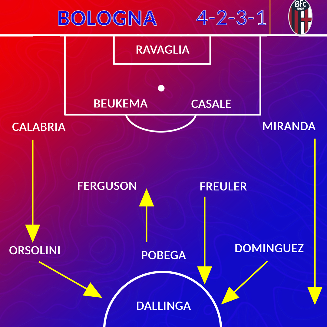 Nella squadra di Italiano attaccano tutt’e due i terzini, Holm (ha annullato Leao all’Olimpico) a destra e Miranda (attenzione ai suoi cross) a sinistra. Raramente si accentrano come invece faceva Biraghi con l’ex allenatore viola, restano molto più spesso lungo linea per ricevere il lancio di uno dei due difensori centrali o del regista (mercoledì era Ferguson, mentre Freuler giocava più avanti). Le due ali invece tagliano al centro, Orsolini da destra per far valere il suo mancino, Ndoye dall’altra parte. Alla manovra d’attacco dà forza Odgaard (altro giocatore migliorato dalla cura dell’allenatore rossoblù) nella posizione del trequartista ma con funzioni anche da centrocampista. Il danese ha qualche acciacco da risolvere e a Firenze al suo posto potrebbe giocare Pobega o Fabbian. Davanti se Castro e Dallinga hanno la stessa forma fisica, gioca il giovane argentino, uno dei centravanti più tignosi del campionato, ma anche lui in questo momento non è al top e alla fine potrebbe spuntarla l’olandese, meno aggressivo del suo compagno. Non vanno dimenticati i due difensori centrali, l’attentissimo Beukema e il più tecnico Lucumi che però, ogni tanto, si fa fregare da qualche eccesso di sicurezza.