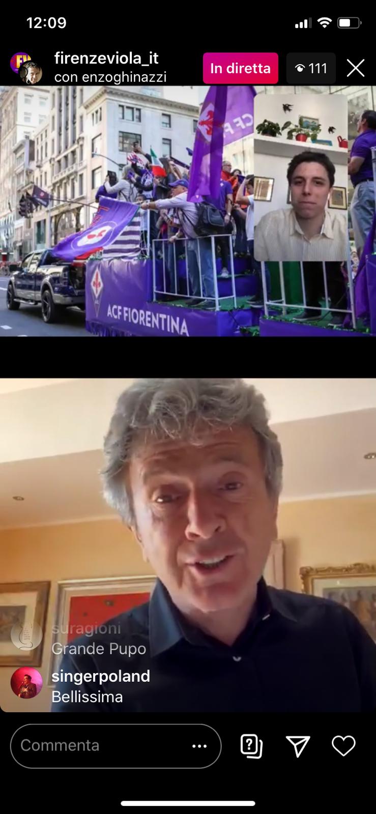 Pupo, pseudonimo di Enzo Ghinazzi, è stato con noi in diretta Instagram. E dopo aver suonato "Firenze Santa Maria Novella" ha parlato di Rocco Commisso e tanto altro: "Fino a due settimane fa andavo a Milano per la diretta del GF Vip, gli altri giorni invece sono a casa. Io sono fiorentino nell'anima. In questo periodo di quarantena qui a Ponticino, sto scrivendo tantissimo e mi è tornata fuori la creatività. Mi ha riportato l'ispirazione. Ho scritto nuove canzoni e la mia nuova canzone uscirà giovedì notte e si intitola "Il rischio enorme di perdersi", dedicata alla mia figlia Clara. Dovevo finire il tour, oggi sarei dovuto essere in concerto a Sydney. A luglio sarò in Canada, poi in Australia, poi in Russia. Ho dovuto annullare tante date. Commisso è un mio grande amico. Lo conosco dal '78. Suonai in una sua discoteca. Rocco mi sembra un uomo adatto e passionale. A Firenze avevamo bisogno di questo. Non mi lamentavo dei Della Valle. Hanno visioni diverse. Forse a Firenze il carattere sanguigno di Commisso è più apprezzato".