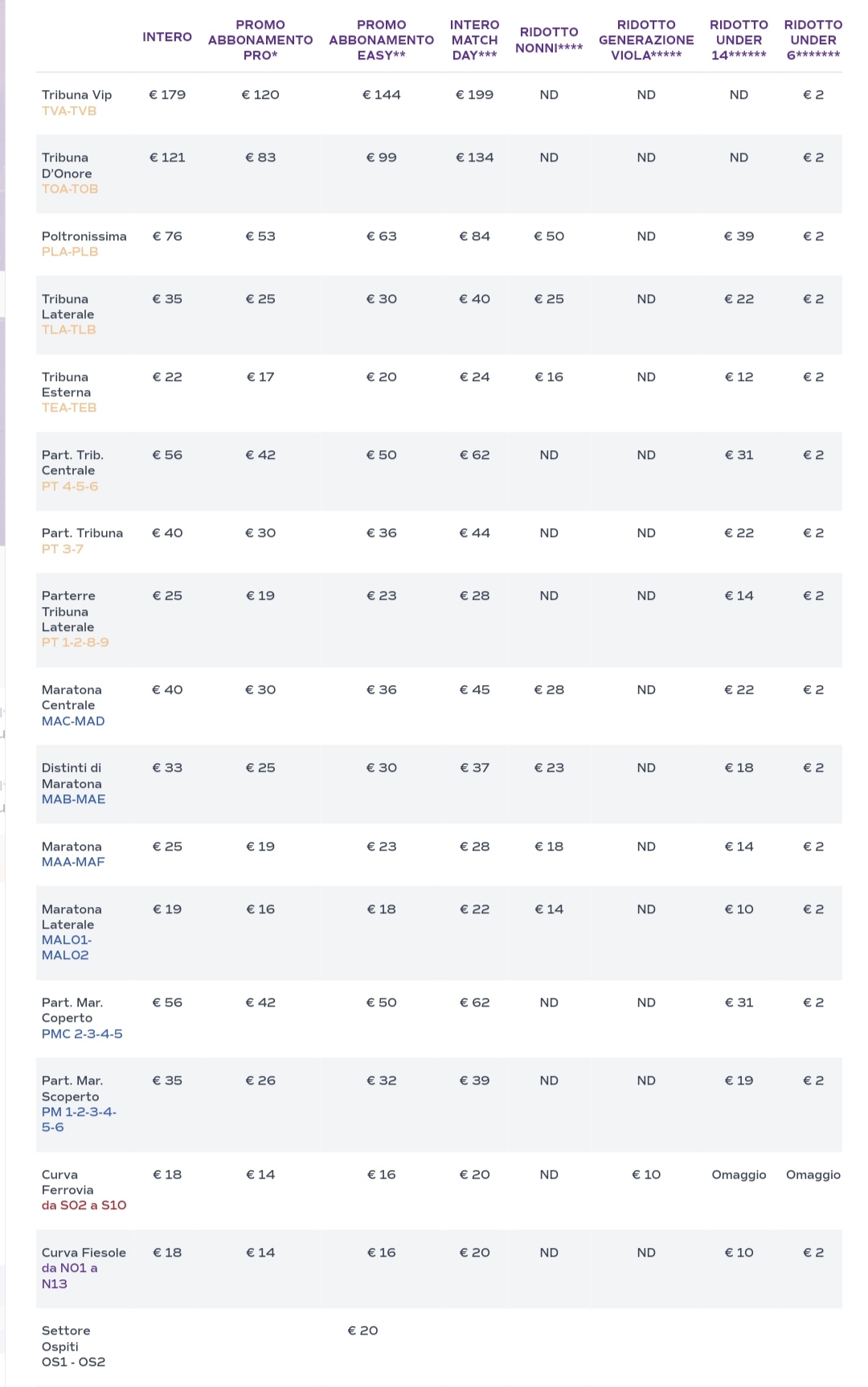 Come testimoniato dal sito ufficiale della Fiorentina, è aperta la vendita libera per la partita di lunedì 2 ottobre contro il Cagliari. Disponibili numerose promozioni, come quella dedicata agli under 6 e under 14, oltre che per specifici settori a chi è nato primaa del 31/12/1973. Di seguito le tariffe: