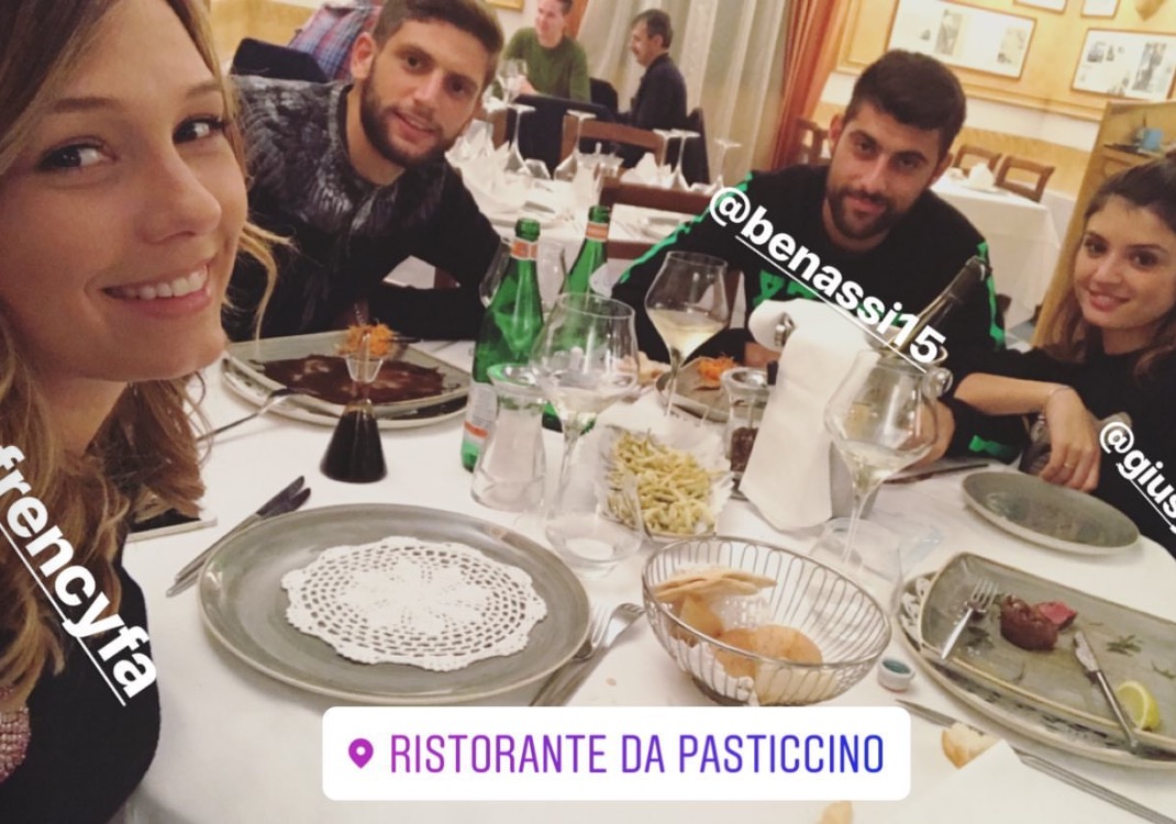 Serata speciale quella di ieri per uno dei protagonisti della Fiorentina, ovvero Marco Benassi, reduce da tre gol in altrettante partite con la maglia viola: il centrocampista infatti ha sfruttato la serata libera per tornare a casa nella sua Modena e ieri sera ha scelto di cenare assieme al compagno di Under-21 Domenico Berardi e alle rispettive fidanzate nei pressi di Sassuolo. Il tutto è stato immortalato dalla compagna dell'attaccante di Bucchi su Instagram. Ecco la foto in questione: